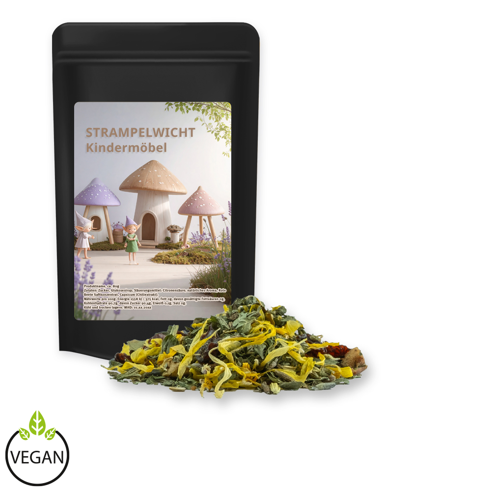 Standbeutel Mini schwarz. Werbeanbringung als Etikett in 4c individuell bedruckbar. Zutaten... mehr