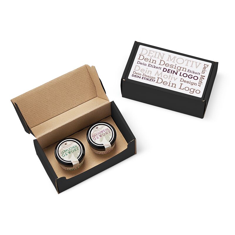 Ab 100 Stück mit Ihrem Motiv im 4c Druck auf dem Deckel des Geschenkkartons, ab 1.000 Stück vollflächig bedruckt im Offsetdruck: Verschenken Sie Weihnachts-Spezialitäten mit Premium Zutaten ohne künstliche Zusatzstoffe, 100 % plastikfrei verpackt und mit Liebe konfektioniert in Deutschland. Sie suchen eine andere Größe? Dieses Premium Präsent ist auch mit 3 oder 4 Gläsern erhältlich.