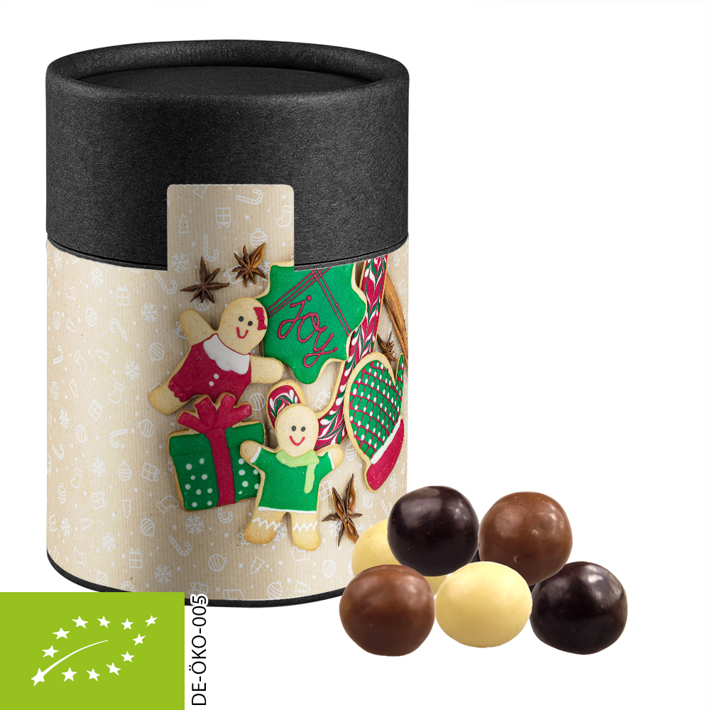 Bio Knusperkugeln-Mix, ca. 50g, Kraftpapierdose Midi schwarz