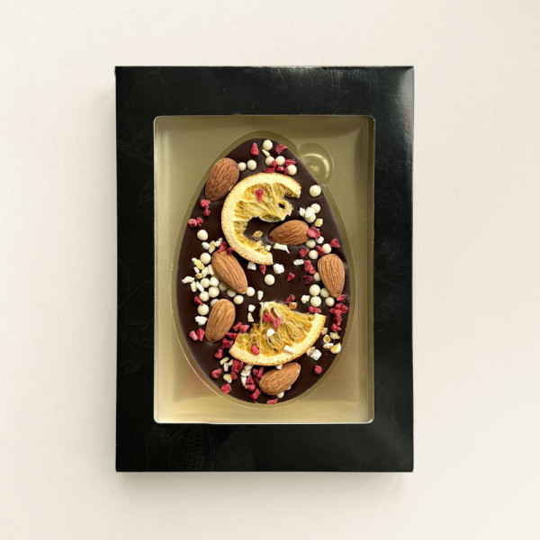 Ein wunderschön mit Nüssen und Früchten verziertes Schokoladen-Osterei in einer luxuriösen Geschenkbox. Diese köstliche Osterüberraschung ist in Zartbitterschokolade erhältlich. Mit diesem Geschenk aus belgischer Qualitäts­schokolade wird das Überraschen besonders einfach gemacht.