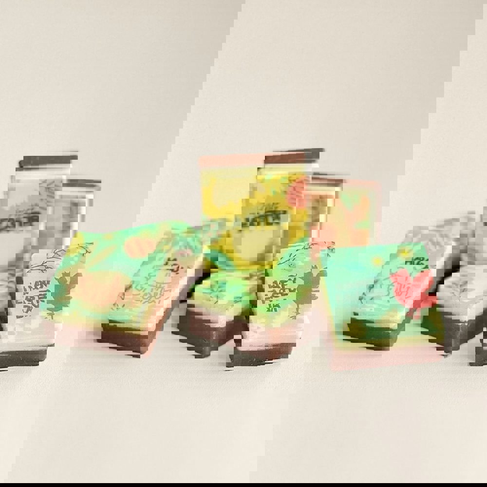 Bedruckte Pralinchen mit fröhlichen Osterdekorationen. Eine Schicht Vollmilch- und weiße... mehr