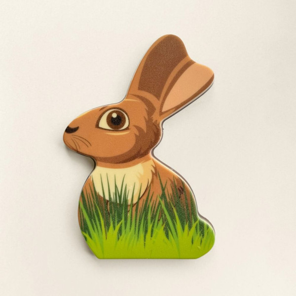 Festlicher geht es kaum! Ein fröhlich bedruckter Osterhase in einer hübschen Geschenkverpackung. Hergestellt aus Milchschokolade mit einer dünnen Schicht weißer Schokolade und einem fröhlichen Druck. Ob ein Stück oder tausend, wir machen es möglich.