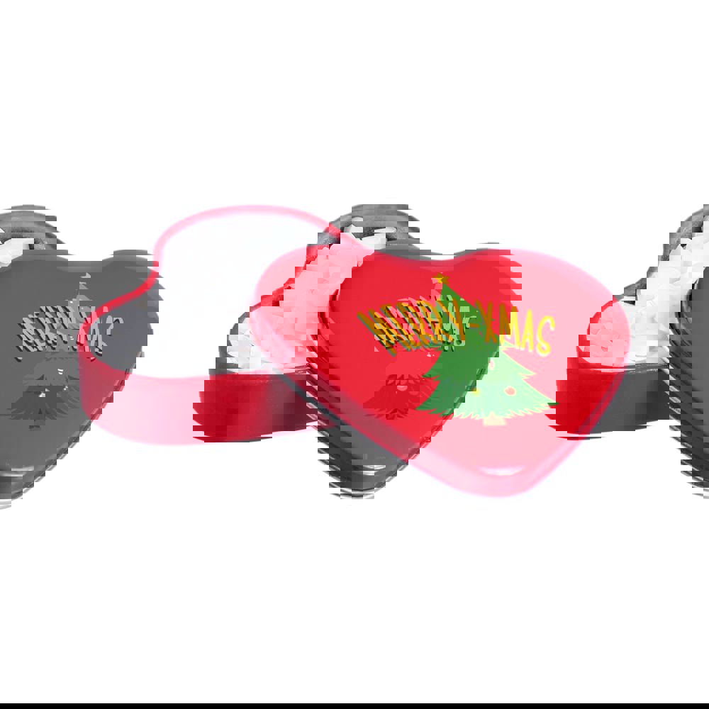 Herzförmige Dose rot, 4c-Euroskala bedruckt mit ca. 23 Gramm herzförmigen Pfefferminz, Zutatenaufkleber und eingeschweißt