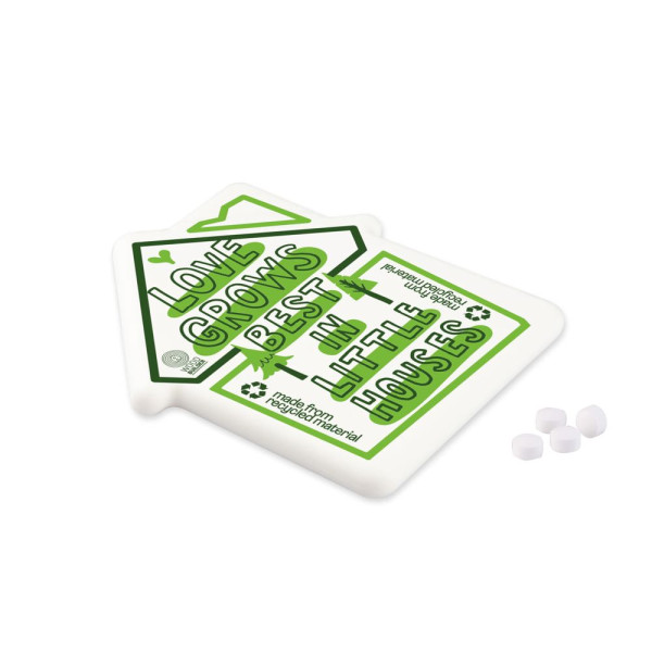 Recycelter weißer Pfefferminzspender in Form eines Hauses, gefüllt mit ca. 8 Gramm zuckerfreien... mehr