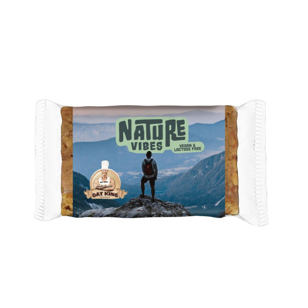 Haferflocken-Energieriegel in der Geschmacksrichtung Apfelstrudel, mit einem farbigen Aufkleber