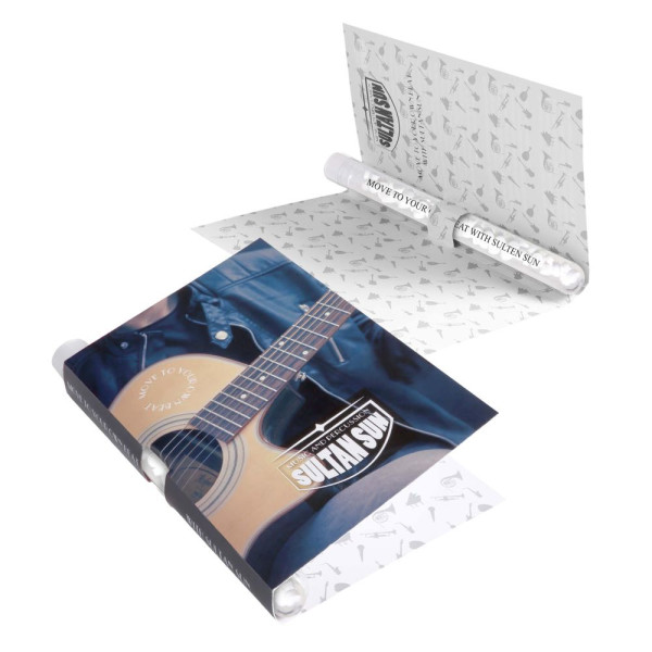 Vollfarbig bedruckte Karte inklusive vollfarbig bedrucktem Reagenzglas, gefüllt mit ca. 12 g Mini-Mints (Artikel 1705).