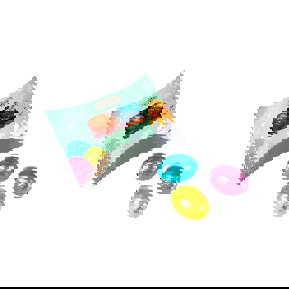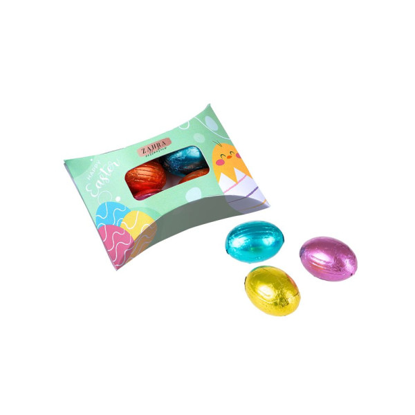 Kissenschachtel mit Vollfarbdruck, gefüllt mit 4 knusprigen Ostereiern mehr
