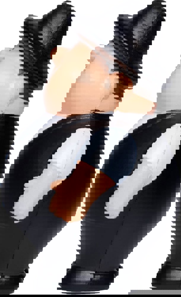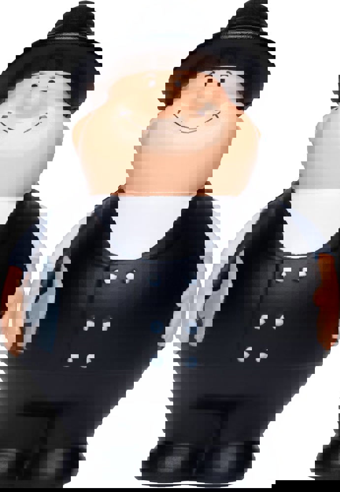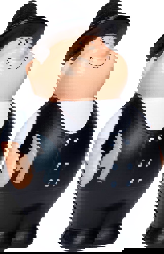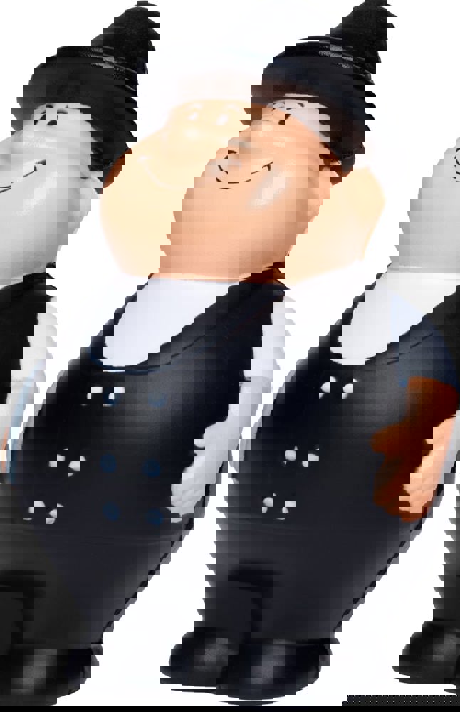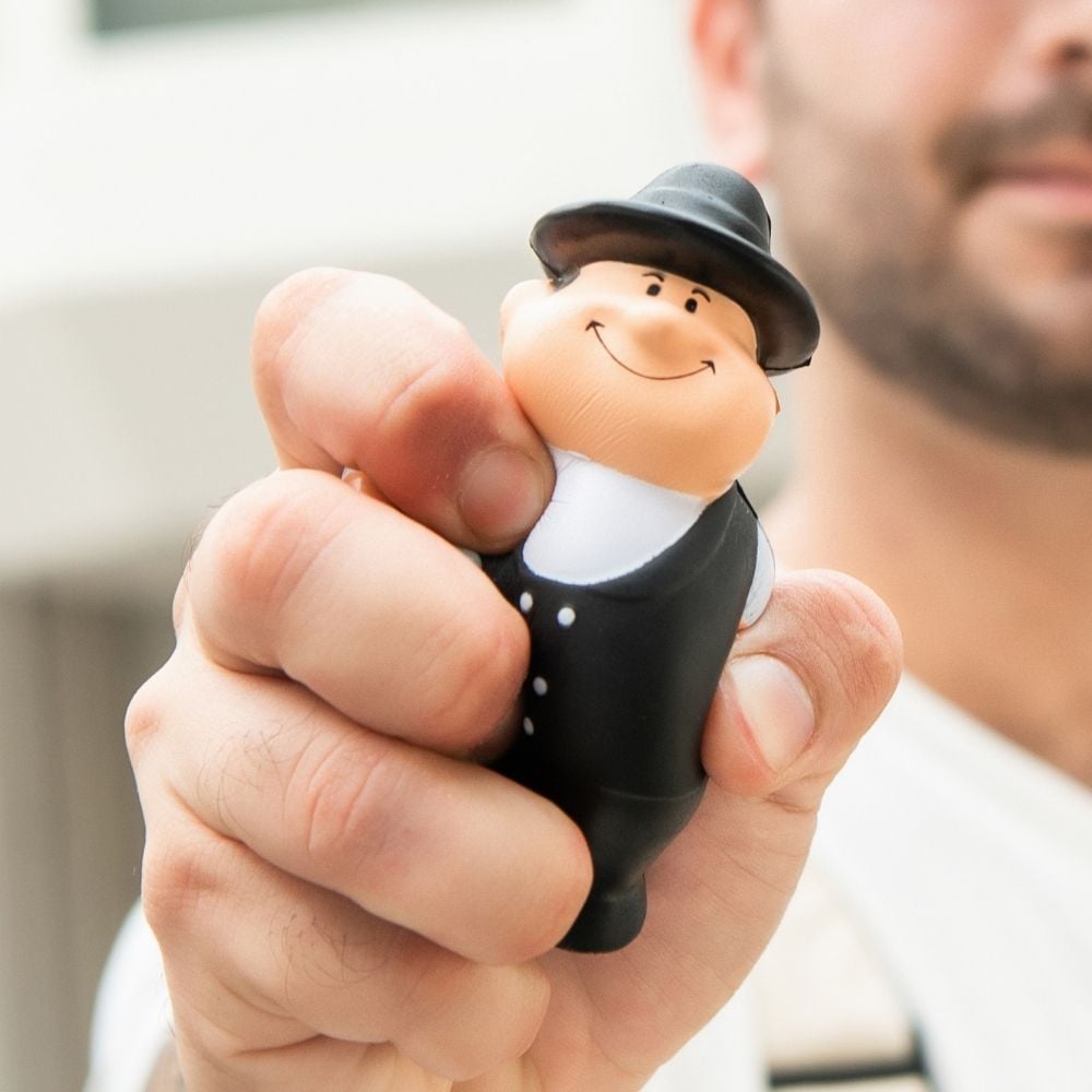 In traditioneller Kluft sorgt er für fachgerechte Stressbekämpfung. Ein großer schwarzer Schlapphut mit breiter Krempe gehört genauso dazu wie die schwarze Hose, die schwarzen Schuhe, der Staude (das weiße, kragenlose Hemd) und die Weste mit den weißen Knöpfen. Werkzeug hat er natürlich auch dabei, um Ihnen etwas zur Entspannung zu bauen. Die Arbeitspraktiken lernt er auf der Walz und die Lebenserfahrung, die er braucht, um sich zu entspannen, eignet er sich ebenfalls auf den Wanderjahren an. Damit also gar kein Stress aufkommt: SQUEEZIES® Dachdecker Bert® einfach "zusammenknautschen". Durch die Materialbeschaffenheit nimmt das Produkt die Ursprungsform wieder ein.