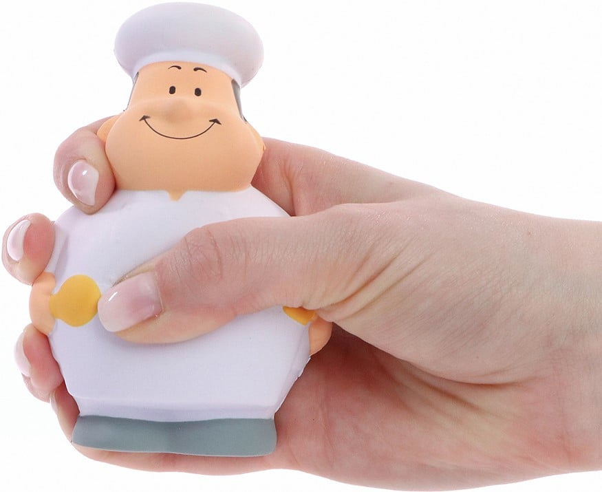 Unser Gourmet Bert® sorgt mit allerlei Leckereien für außergewöhnliche Gaumenfreude. Er zaubert kulinarische Genüsse, die Ihnen so sehr das Wasser im Mund zusammen laufen lassen werden, dass Sie praktisch gar keine Zeit mehr haben, gestresst zu sein und falls doch: SQUEEZIES® Gourmet Bert® (Koch) zum Abbau von Stress einfach "zusammenknautschen". Durch die Materialbeschaffenheit nimmt das Produkt die Ursprungsform wieder ein. Ergänzende Informationen - Achtung: Kein Spielzeug! Von Kindern unter 3 Jahren fernhalten. Kann ablösbare Kleinteile enthalten.