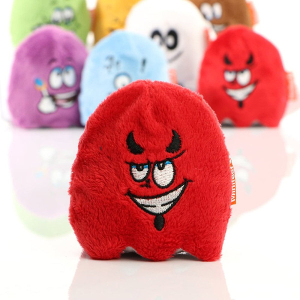 Die Teamgeister-Serie, bestehend aus den typischen Bürocharakteren „Koffein-Junkie“, „Problemlöser“, „Kreative“, „Witzbold“, „Organizer“, „Teufelskerl“ und „Teamgeist“, vereint die Mehrwerte der Anti-Stress-Artikel und der Displayreiniger in einem sympathischen Werbeträger mit Charakter. Die etwa 8cm großen, detailverliebten Plüsch-Charaktere, sind wahre Anti-Stress-Helden. Sie lassen sich im stressigen Alltag knautschen, drücken und quetschen, ohne dabei die gute Laune zu verlieren. Durch die Materialbeschaffenheit nehmen sie schnurstracks die Ursprungsform wieder ein. Zusätzlich verfügen sie über eine hochwertige Mikrofaserunterseite, durch die sich glatte Oberflächen wie durch Zauberhand reinigen lassen. Die Kombination aus diesen Eigenschaften lässt einen langlebigen Werbeträger entstehen, der mehrfach am Tag in die Hand genommen wird und so die Werbebotschaft optimal transportiert.