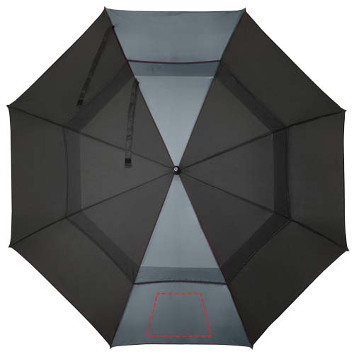 Der windfeste Golfschirm Jeff überzeugt mit einem großzügigen Schirmdach aus Polyester, das bequem mehreren Personen Schutz bietet. Der robuste Schaft und Rahmen aus Fiberglas sorgen für hohe Flexibilität und Widerstandsfähigkeit bei starkem Wind. Der praktische Kunststoffgriff mit automatischer Öffnung ermöglicht schnelles und bequemes Handling. Die kontrastfarbenen Schirmsegmente bieten eine ideale Fläche für auffälliges Branding – perfekt für Events, Werbeaktionen oder den Alltag.