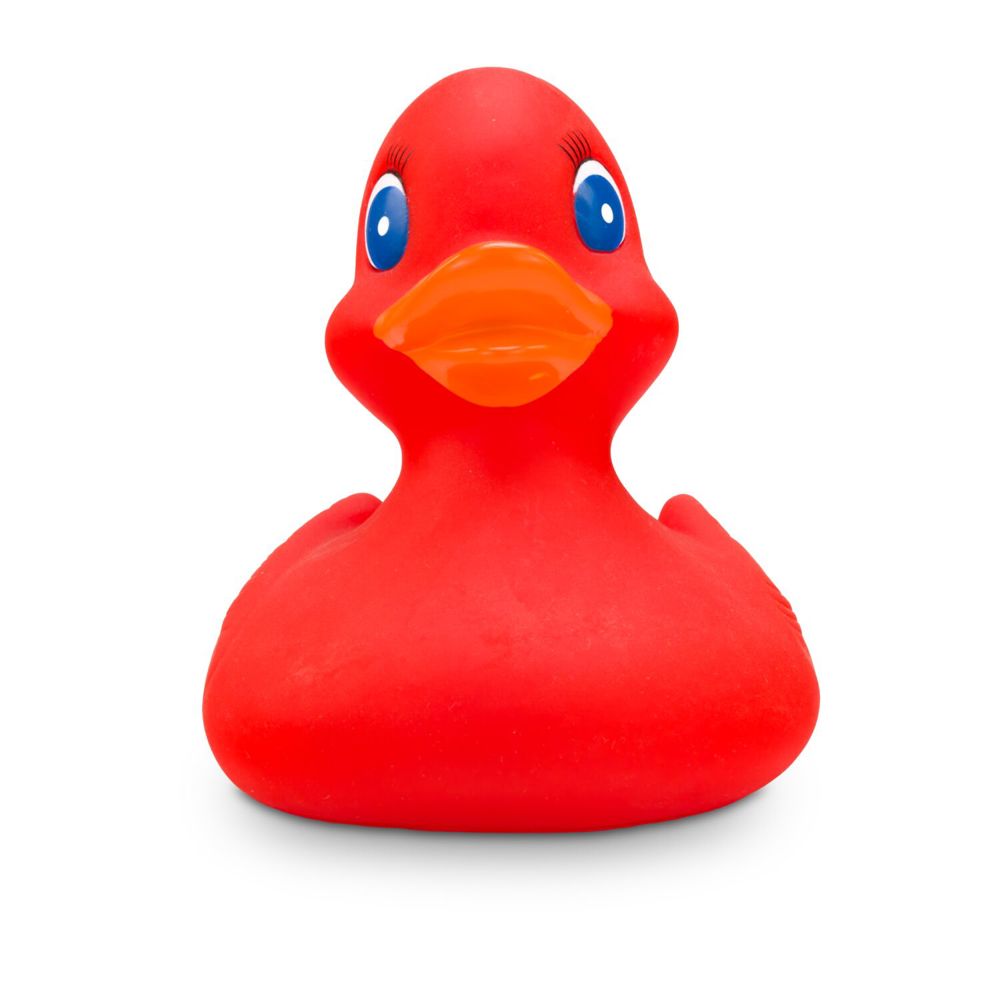 Ruby ist die elegante Schwester von Heidi - sie zieht mit ihrem leuchtenden Rot alle Blicke auf sich und bringt Farbe ins Badezimmer. Das charmante Aussehen verdankt die Badeente ihrem großen, schlanken Körperbau, ihren liebevoll geformten Wimpern und den strahlend blauen Augen. Größe: ca. 10 cm. Inklusive Quietschventil