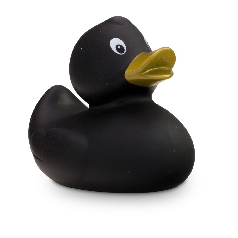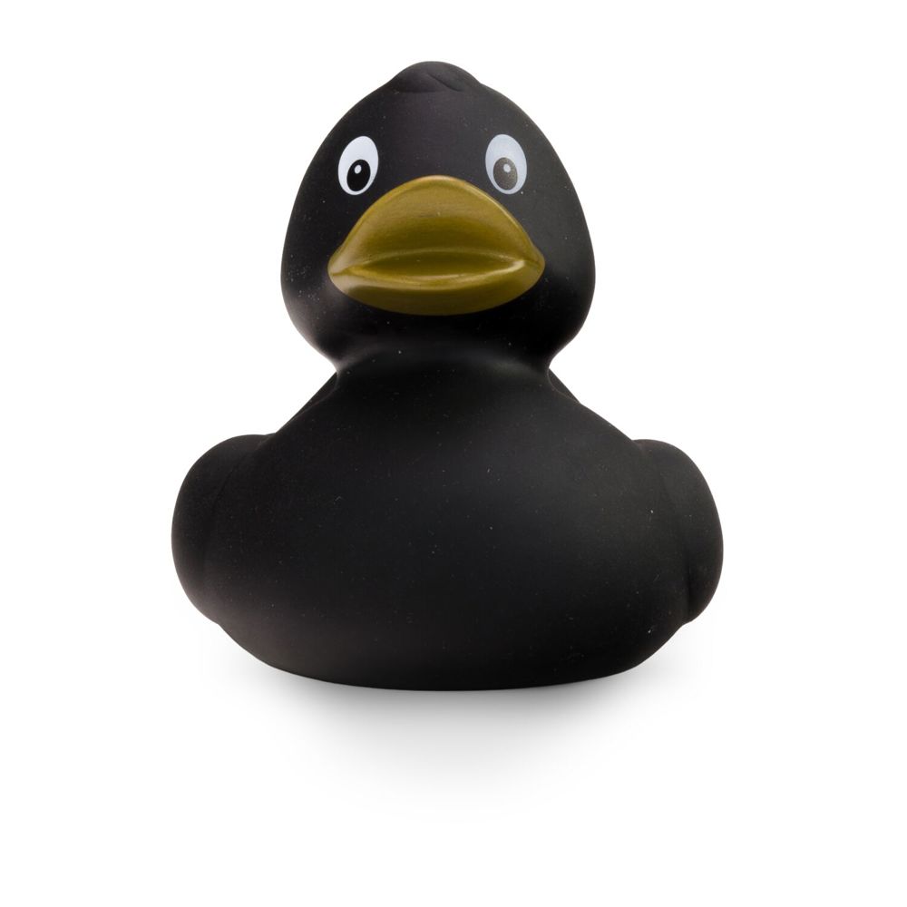 Greta Goldschnabel - eine klassische Ente in Schwarz-Gold. Ihr tiefschwarzes Gefieder ist kombiniert mit einem goldenen Schnabel und strahlt so mit ihrem formschönen Körperbau pure, zeitlose Eleganz aus. Die besonders edle Variante unter den Badeenten-Klassikern. Greta hat noch weitere kleine und große Geschwister, auch in anderen Farben. Größe: ca. 8 cm. Inklusive Quietschventil