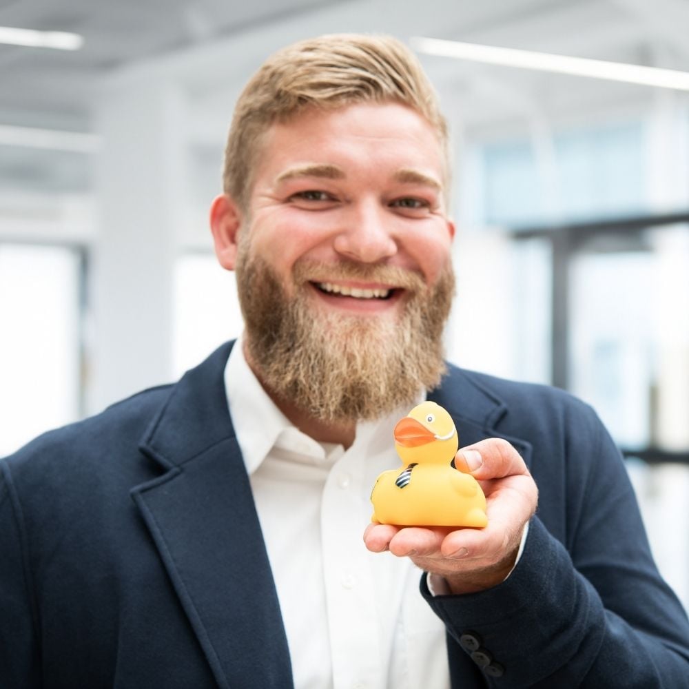 Diese Ente mit Schlips und Aktentasche macht auch in jeder Badewanne einen seriösen Eindruck und hat, selbst bei einem noch so entspannten Bad, immer nur die Arbeit im Kopf. Fleißig und gewissenhaft erfüllt unsere Quietsche-Ente Business jede Aufgabe.