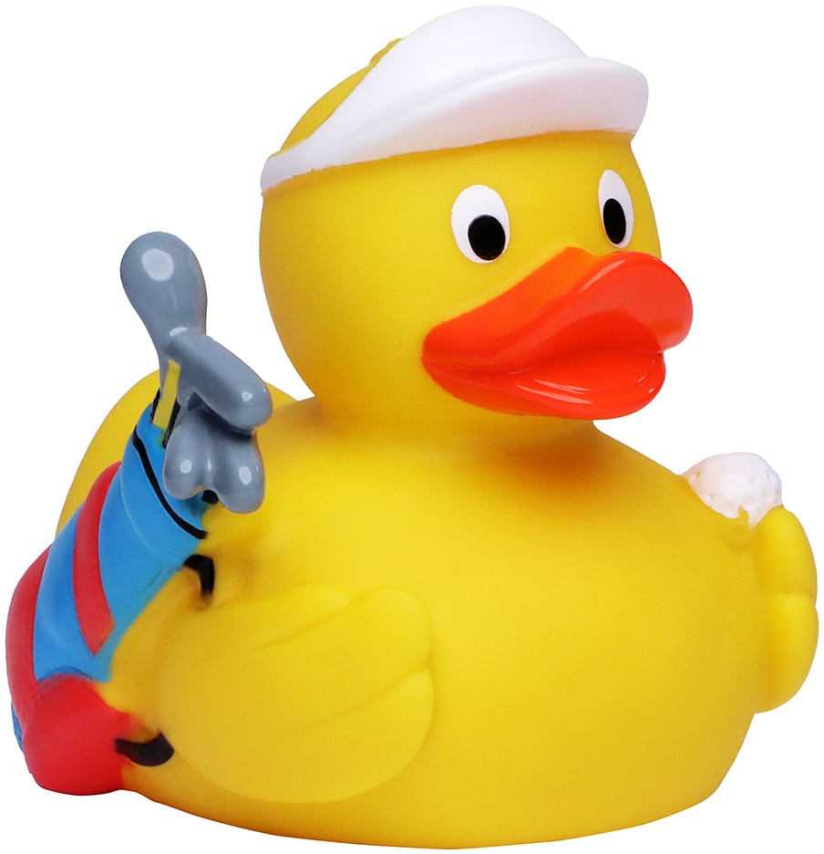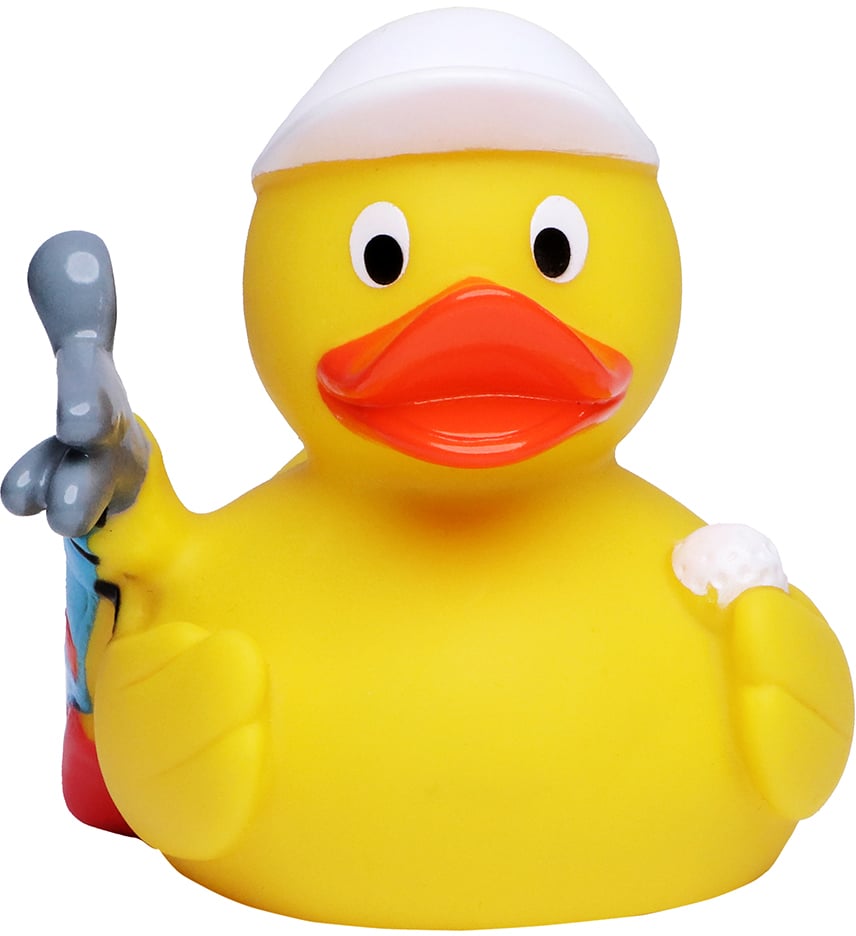 Mit Golfbag, Schirmmütze und extra Ball, will diese Ente Ihre Badewanne zum Golfplatz umfunktionieren… Allerdings verbringt sie wohl mehr Zeit damit, ihre Schläger und Bälle zu suchen – die können nämlich, im Gegensatz zu unserer Ente, nicht so gut schwimmen. Nichtsdestotrotz versucht das Schnabeltier, ehrgeizig, wie sie nun einmal ist, ständig ihr Handicap zu verbessern und wer auf Wasser spielen kann, kann überall spielen!