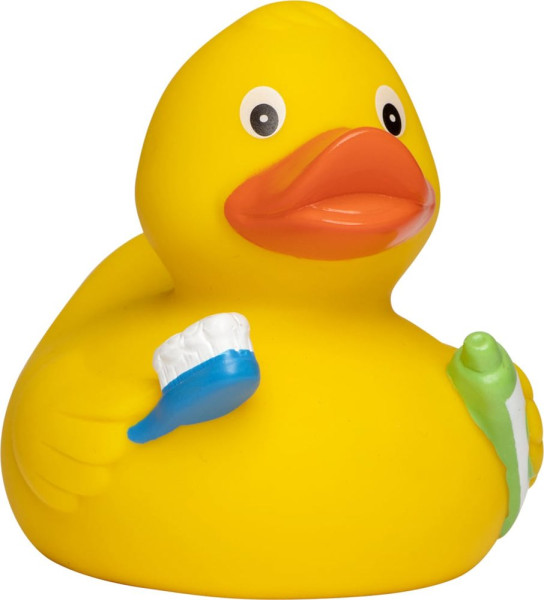 Die Zahnbürste im einem Flügel, die Zahnpasta im anderen - damit die Zähne auch immer schön sauber und lange gesund bleiben. Als kleine Zahnputzerinnerung ist diese Ente ebenso gut geeignet wie als Deko neben dem Zahnputzbecher.