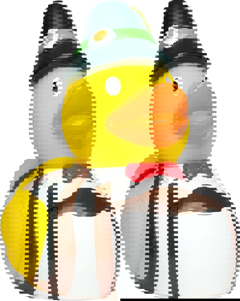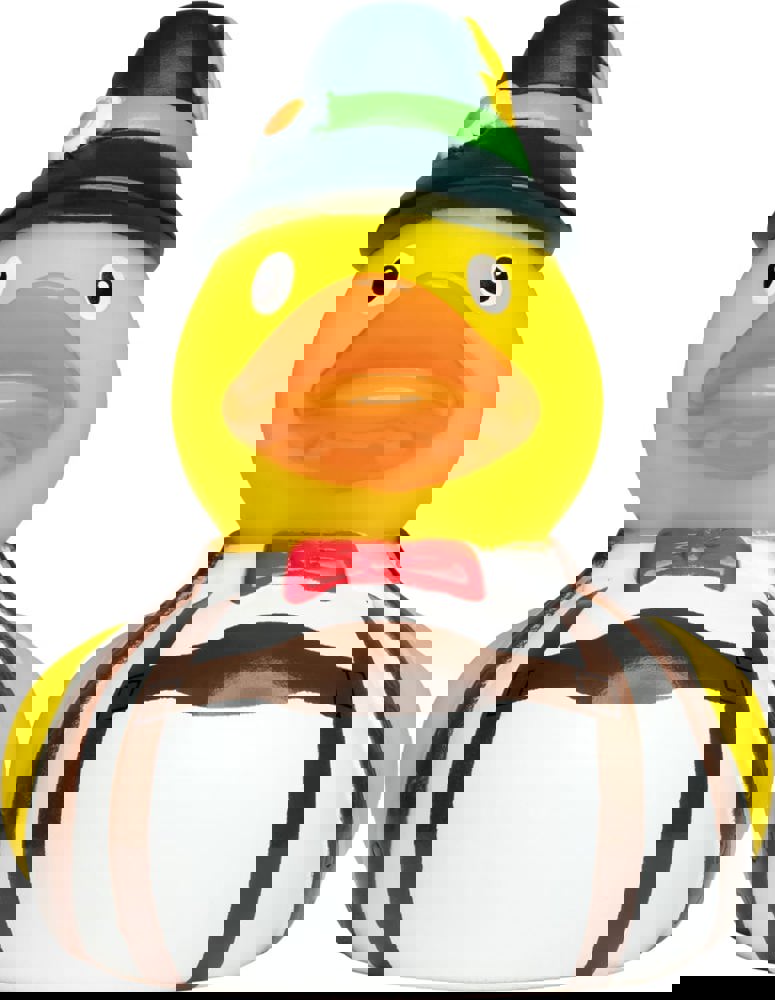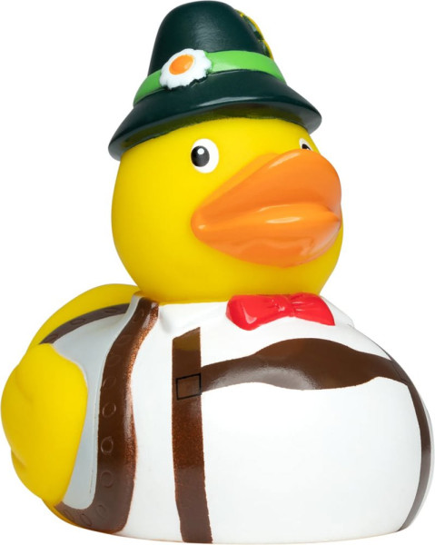 Unser Bayer kommt traditionell bayrisch mit Lederhose und Trachtenhut daher. Aber diese Badeente ist nicht nur die Richtige für Bayern Fans, sondern auch für alle anderen ein richtiger Hingucker.