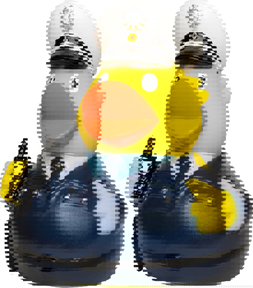 Die PolENTE sorgt für Recht und Ordnung in der Schnabels®-Welt. In moderner, blauer Uniform ausgestattet mit Pistole und Funkgerät, ist sie für alle Einsätze bereit. Gerne auch in der heimischen Badewanne.