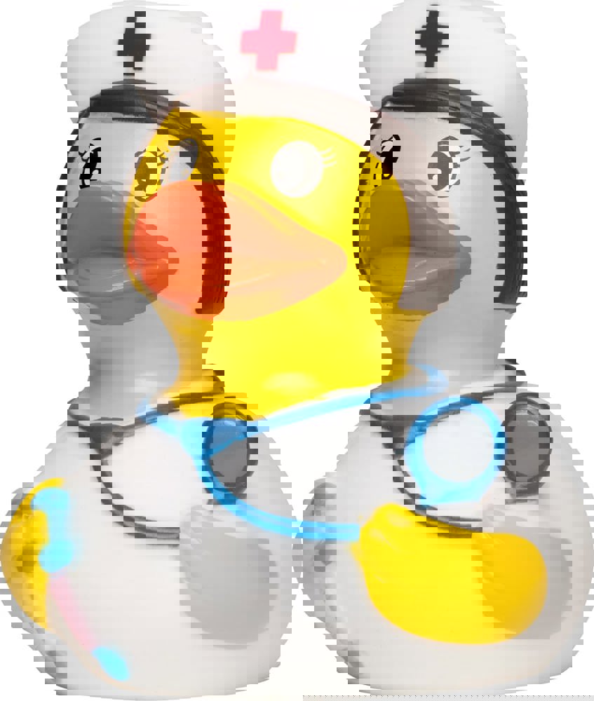 Ihnen geht es nicht gut? Diese Ente sorgt für Ihr Wohlergehen – und was könnte da besser helfen, als ein richtig schön entspanntes Bad? Und wenn das mal nicht reichen sollte, kennt sie auf jeden Fall noch ein paar Heilmittelchen, mit denen sie Sie ganz schnell wieder auf die Beine bringt – und keine Sorge, die Spritze, die sie dabei hat, tut auch nicht mal ein klitzekleines bisschen weh! Die weiße Krankenschwesterkluft mit dem großen, roten Kreuz gehört natürlich auch dazu.