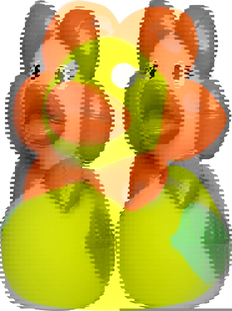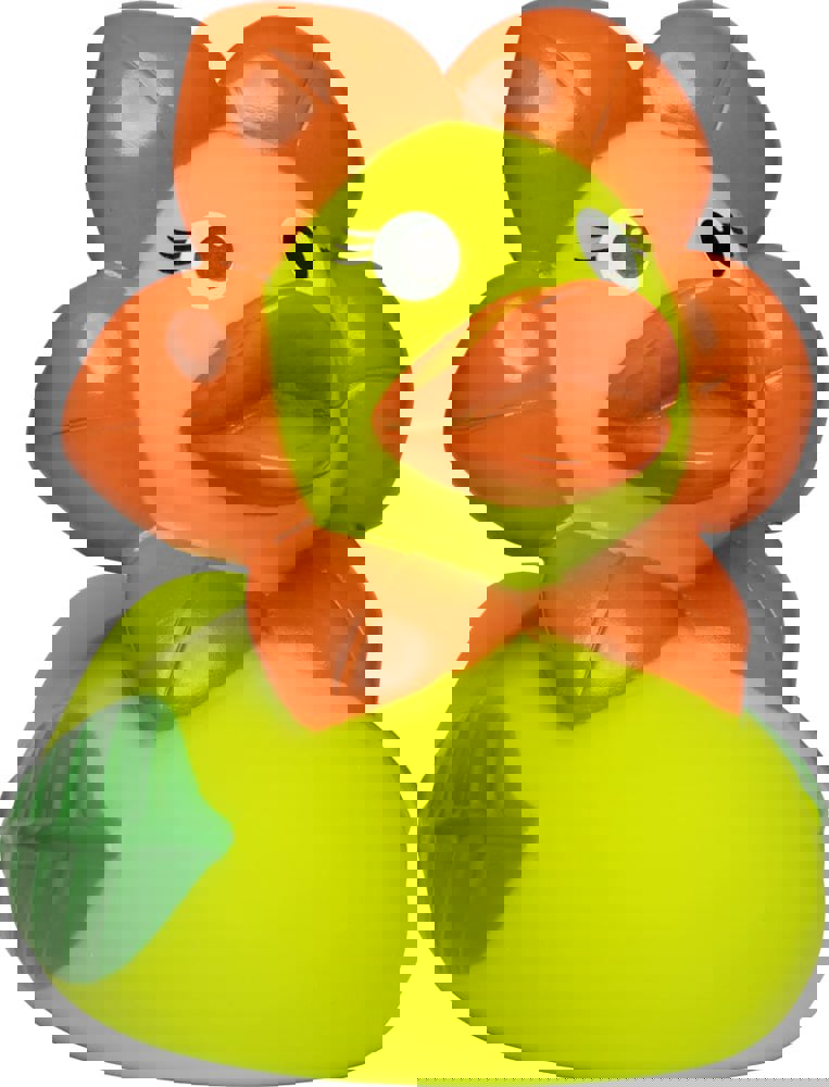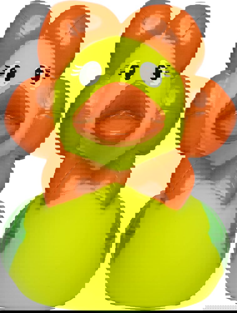 Bei dieser blumigen Ente bekommt der Begriff Grünschnabel eine ganz neue Bedeutung - dabei ist ihr Schnabel, wie bei unseren anderen Enten auch, im typischen Orange, nur das Gefieder ist grün. Um ihren Kopf wächst ein Kranz von Blütenblättern und da, wo andere Enten ihre Flügel haben, hat sie grüne Blätter. Diese Ente ist eine richtige Augenweide und eine blumige Aufmerksamkeit, die unter Garantie niemals welken wird!