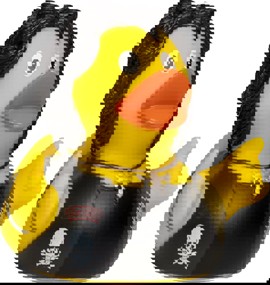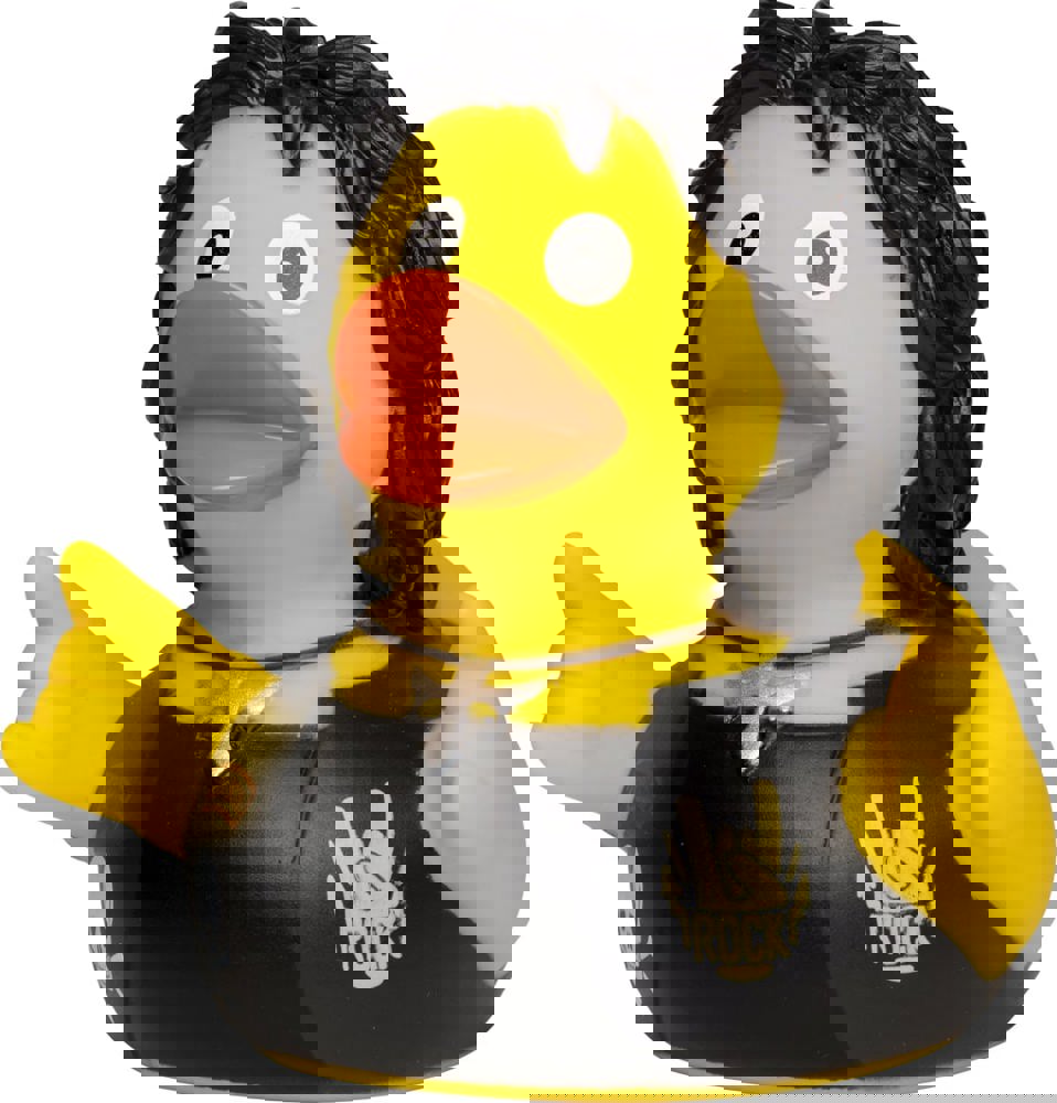 In dieser Ente schlägt das Herz eines Rockstars! Beide Flügelchen zur "Metal Fork" geformt, grüßt der Enterich seine hartgesottenen Kollegen und ist bereit zum Stage Dive in die heimische Badewanne.