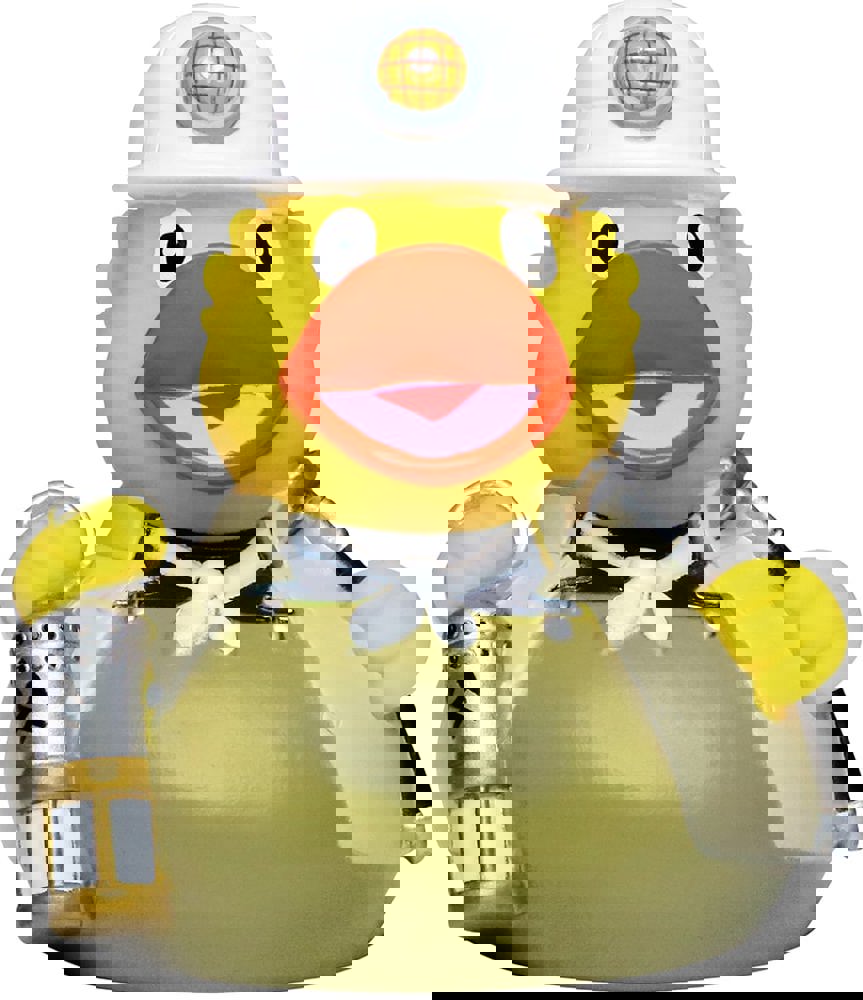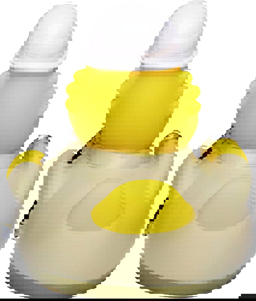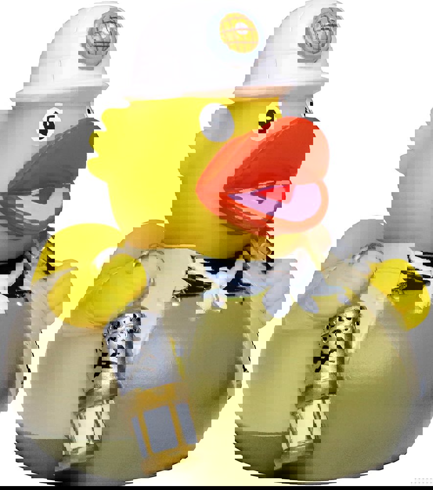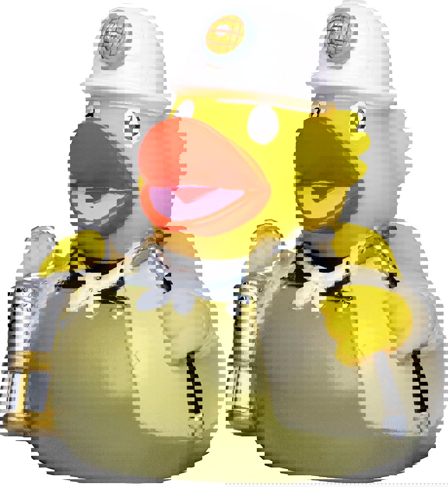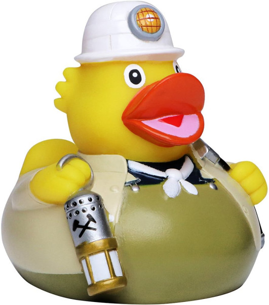Falls es in Ihrem Badezimmer ein Vorkommen von Bodenschätzen geben sollte, können Sie sicher sein, dass unsere Bergmann Ente dieses ans Tageslicht befördern wird. Unser Kumpel trägt eine typische Steiger-Kluft in braun mit einem strahlenden, weißen Halstuch und einem Schutzhelm. Um in der Dunkelheit gut sehen zu können, bringt der Bergmann eine Lampe mit und damit er gleich mit der Arbeit beginnen kann, hat er natürlich auch seine Spitzhacke dabei.