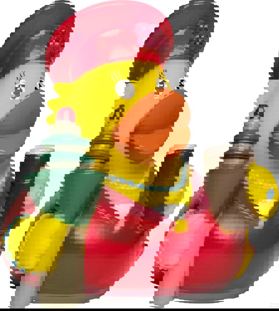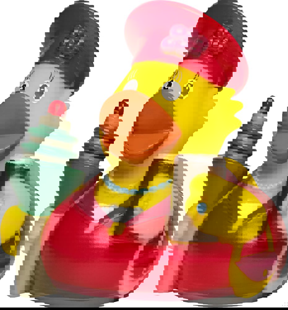 In der Modemetropole Düsseldorf schmeißt sich die Ente von Welt stets schick in Schale, um beim Flanieren auf der Kö neugierige Blicke auf sich zu ziehen. Feuriges Rot und zarte Perlen sind der neuste Ententrend und werden nur noch durch eine ausladende Kopfbedeckung getoppt. Doch welcher Lippenstift ist der Richtige? Am besten ein wasserfester, lautet unsere Empfehlung an das Schwimmtier. Und dann heißt es: Schnabel hoch und auf ins Vergnügen! Der Vollständigkeit halber hat unsere CityDuck® den Rheinturm dabei - nicht zuletzt, um nach dem ein oder anderen Altbier sicheren Halt zu bewahren. Ergänzende Informationen - Achtung! Nicht für Kinder unter 10 Monaten geeignet. Stoßgefahr im Rachenbereich.
