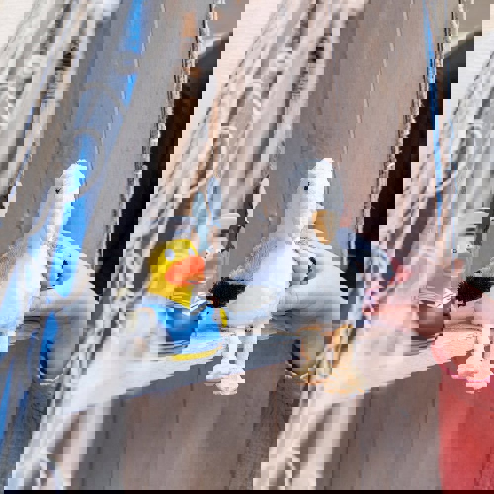 Setzen Sie die Segel auf Erfolg mit Ihrer bedruckbaren Badeente Seemann. Mit nordischer Seemannskluft über dem Gefieder, Tampen sowie Steuerrad in den Flügeln ist der quietschgelbe Seemann bereit, die größten Badewannenmeere der Welt zu bereisen.