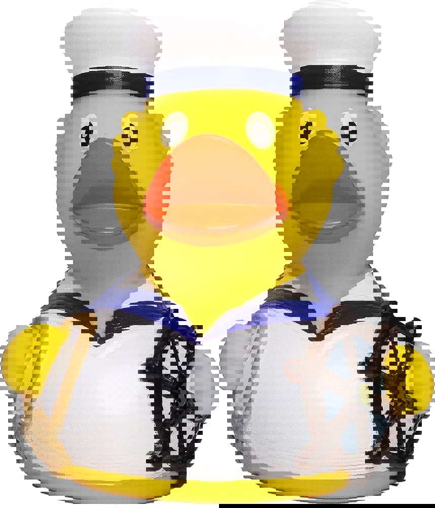 Setzen Sie die Segel auf Erfolg mit Ihrer bedruckbaren Badeente Seemann. Mit nordischer Seemannskluft über dem Gefieder, Tampen sowie Steuerrad in den Flügeln ist der quietschgelbe Seemann bereit, die größten Badewannenmeere der Welt zu bereisen.