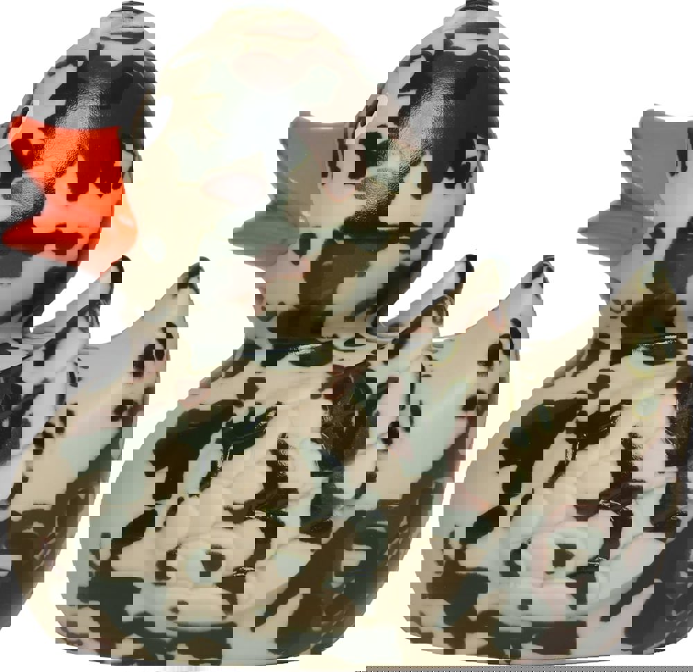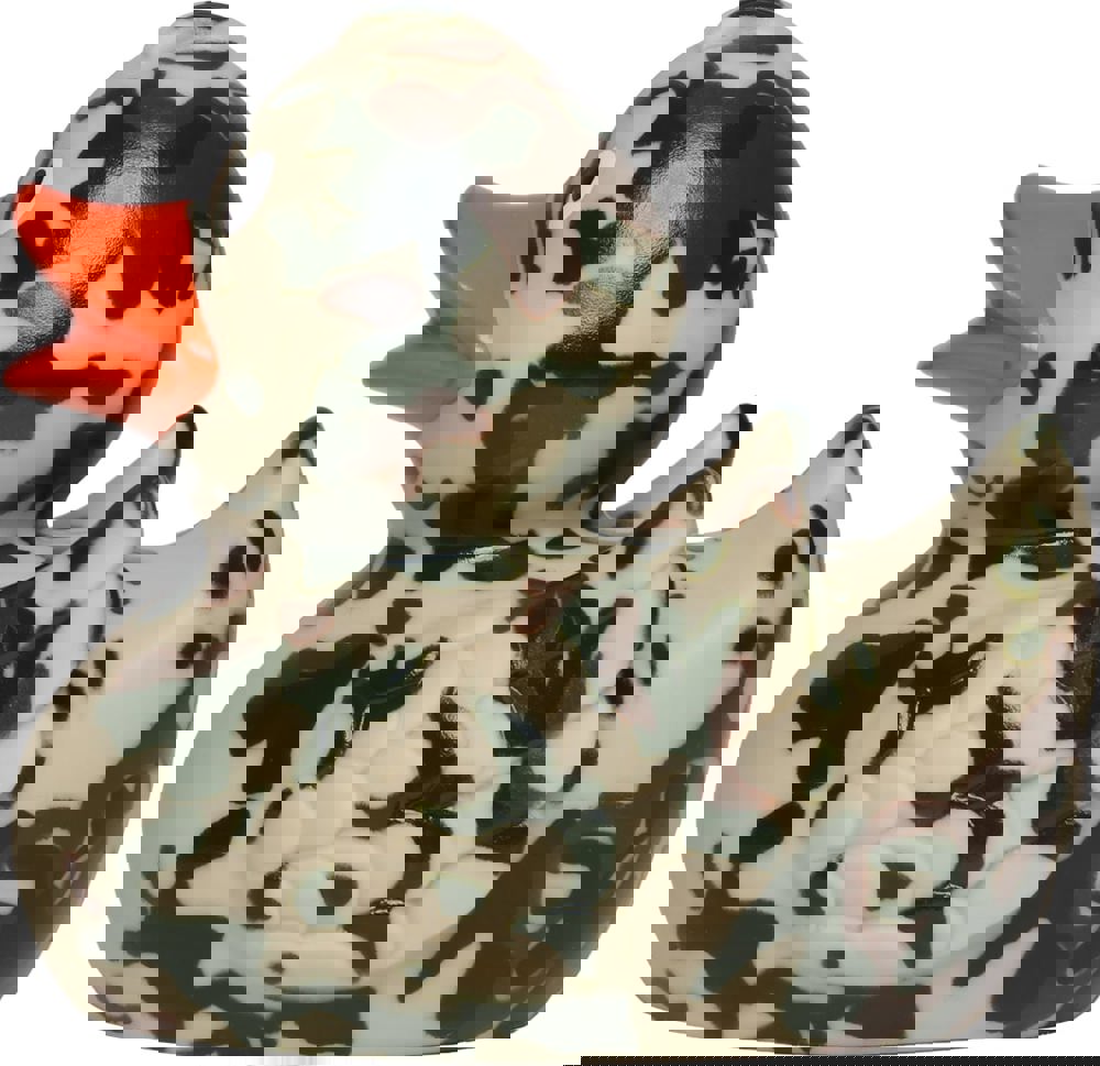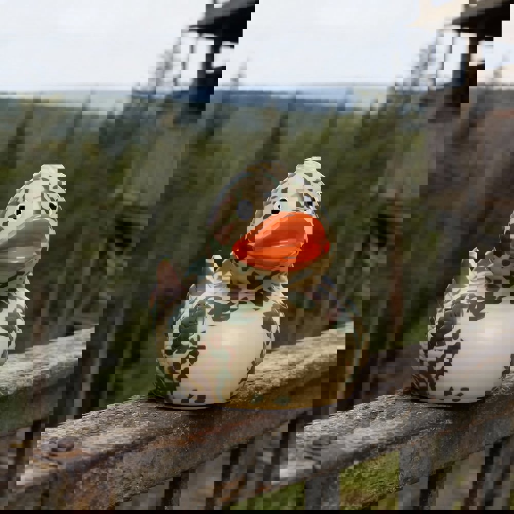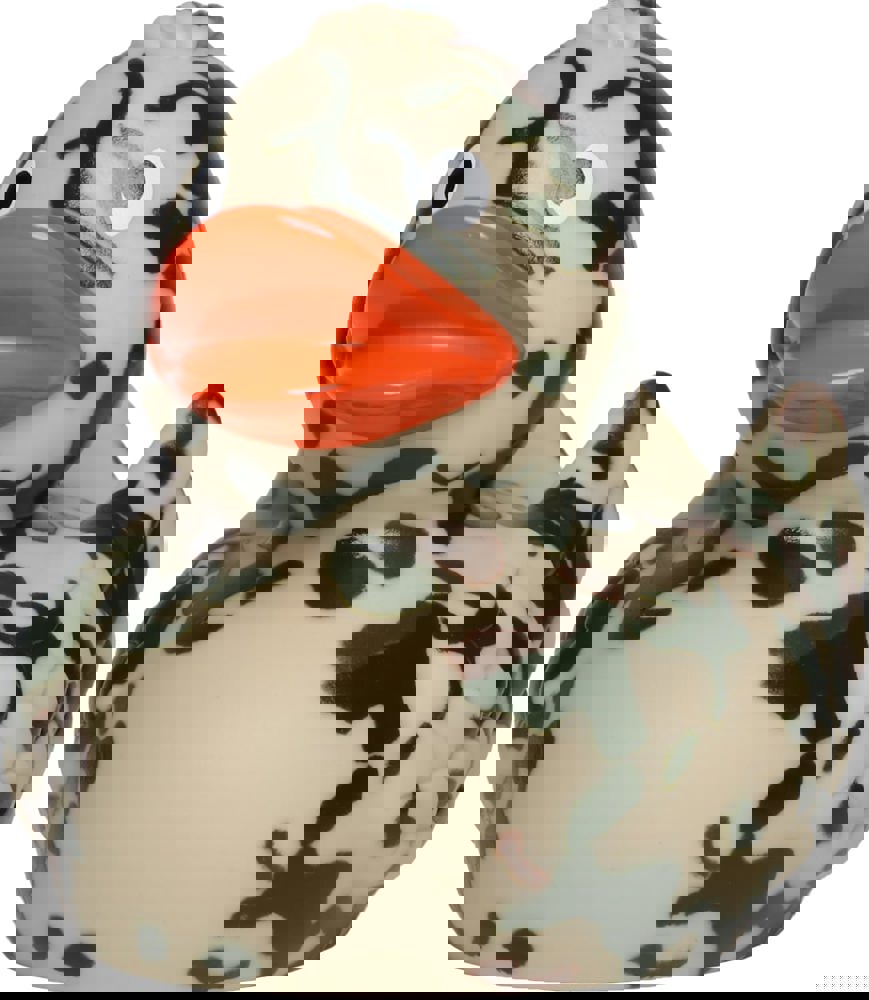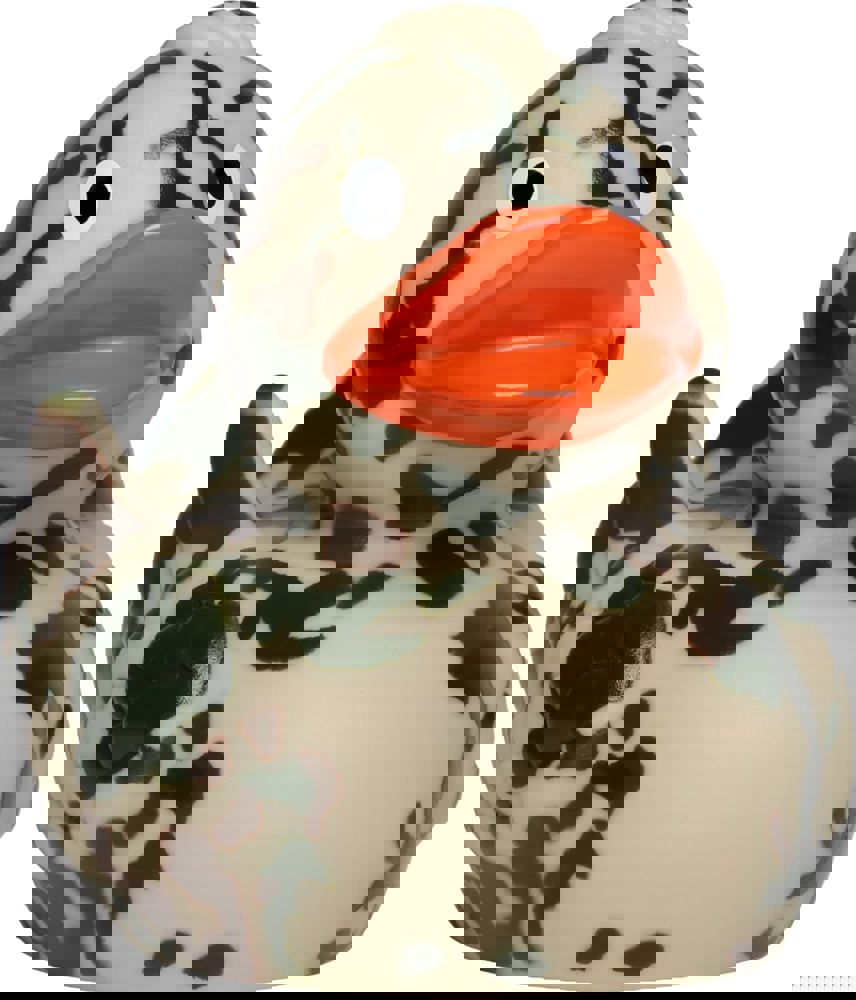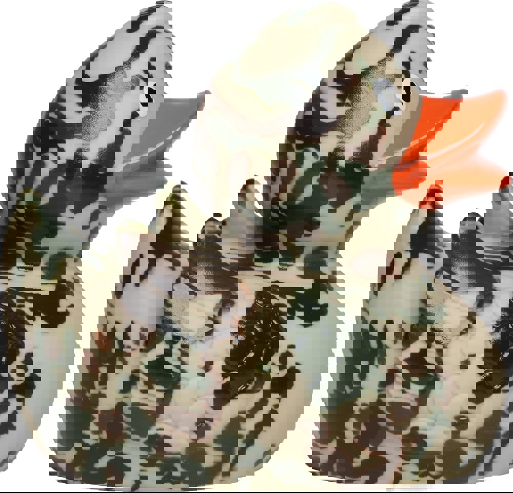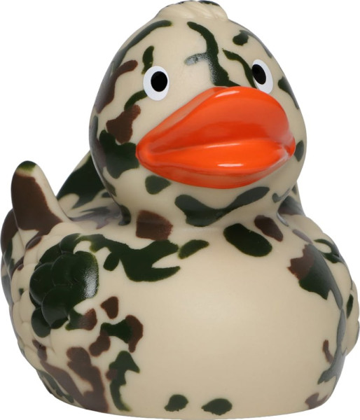 Hier kommt eine Badeentchen in geheimer Mission. Um nicht gleich gesehen zu werden, hat es sein leuchtend gelbes Gefieder geschickt mit einem Camouflagemuster und deckenden Farben umhüllt. Wie die geheime Mission lautet? Bringe die Menschen zum Lächeln. Wir sagen: Das wird ihr mühelos gelingen.