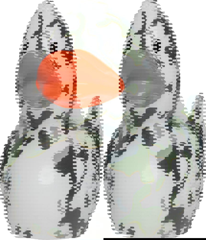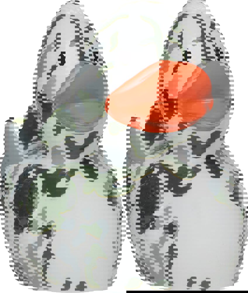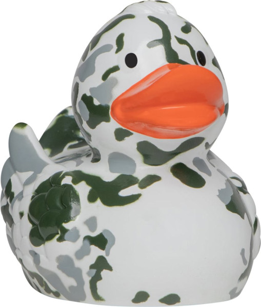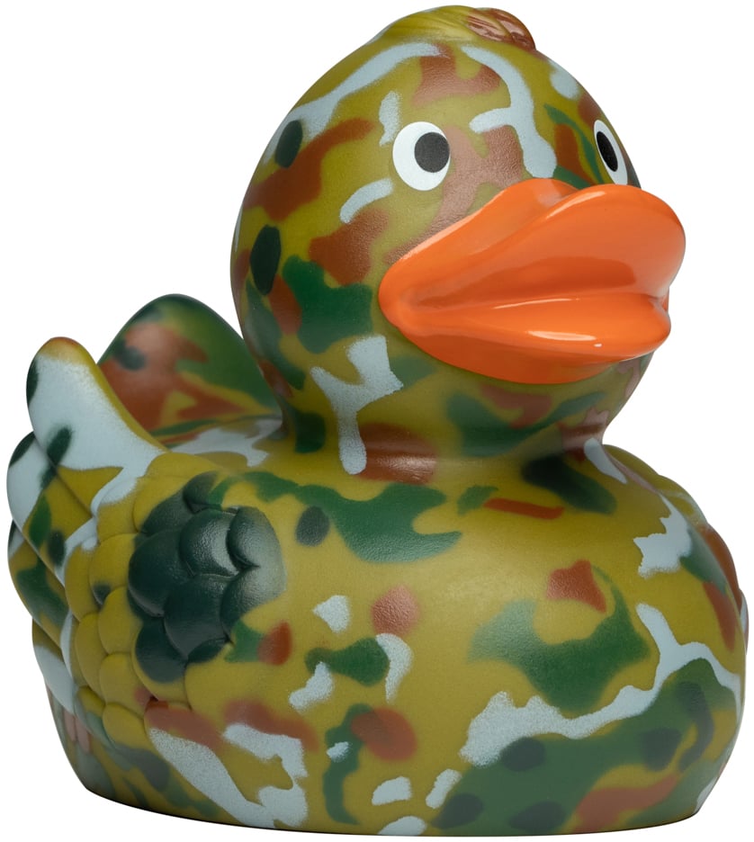 Hier kommt eine Badeentchen in geheimer Mission. Um nicht gleich gesehen zu werden, hat es sein leuchtend gelbes Gefieder geschickt mit einem Camouflagemuster und deckenden Farben umhüllt. Wie die geheime Mission lautet? Bringe die Menschen zum Lächeln. Wir sagen: Das wird ihr mühelos gelingen.