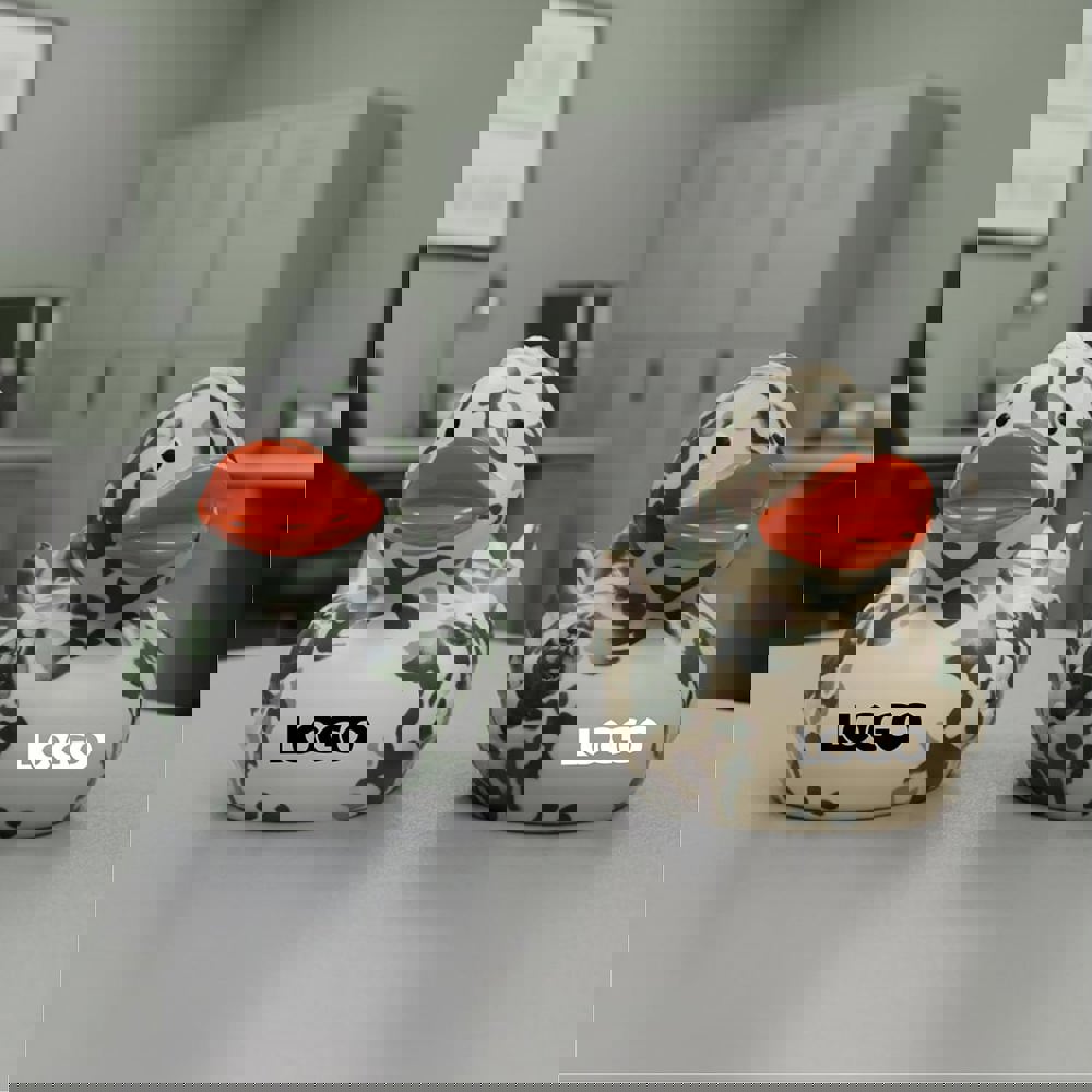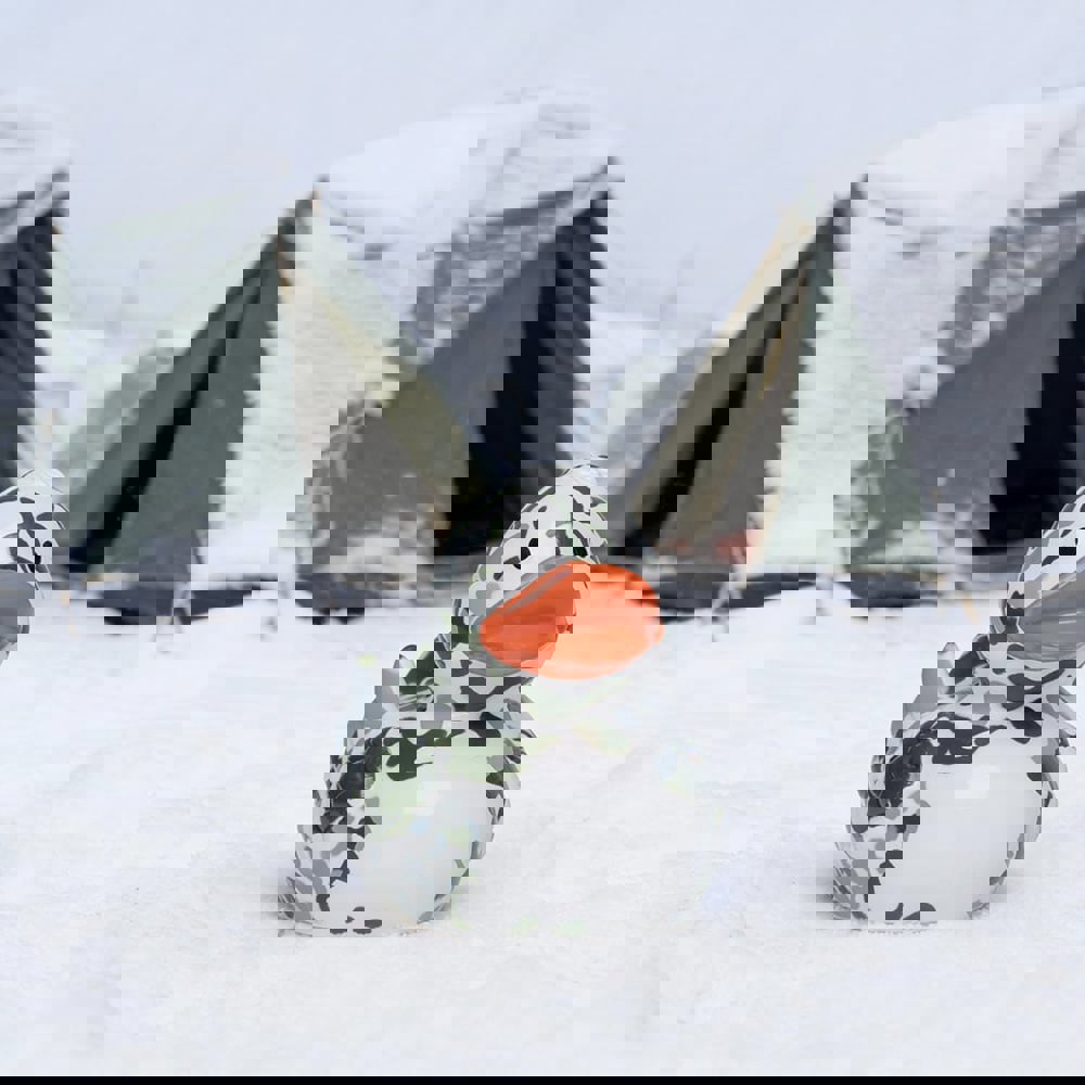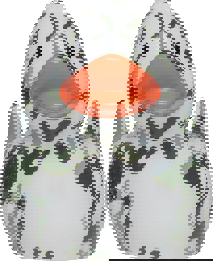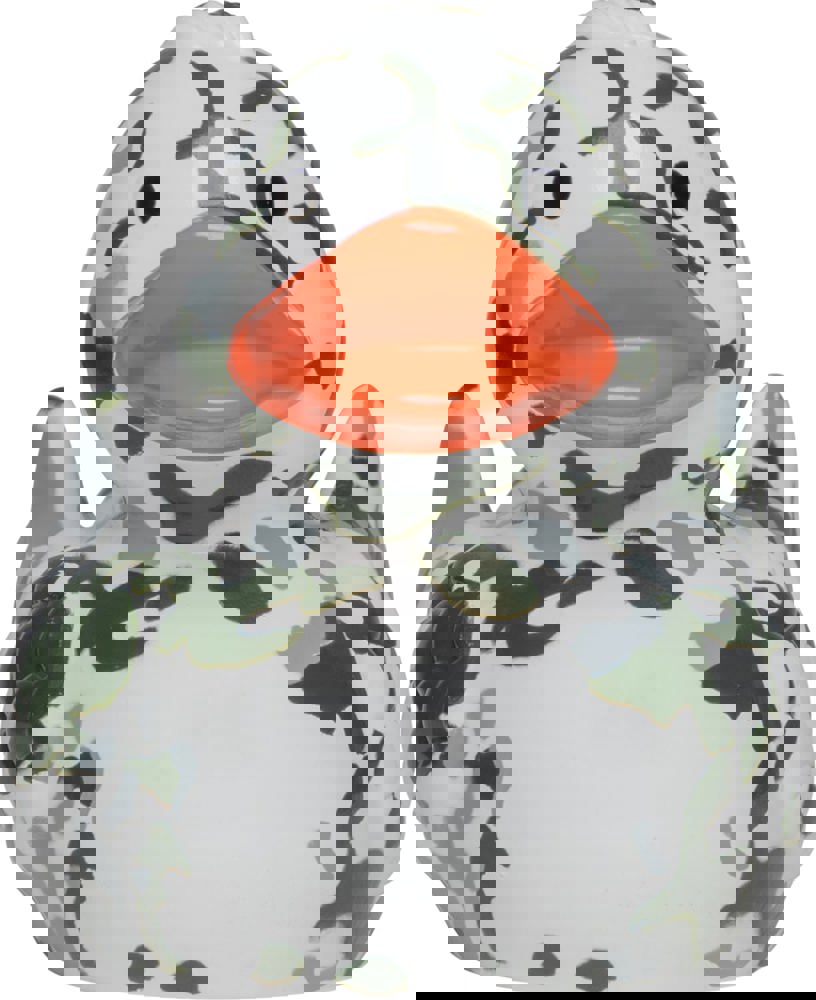 Hier kommt eine Badeentchen in geheimer Mission. Um nicht gleich gesehen zu werden, hat es sein leuchtend gelbes Gefieder geschickt mit einem Camouflagemuster und deckenden Farben umhüllt. Wie die geheime Mission lautet? Bringe die Menschen zum Lächeln. Wir sagen: Das wird ihr mühelos gelingen.