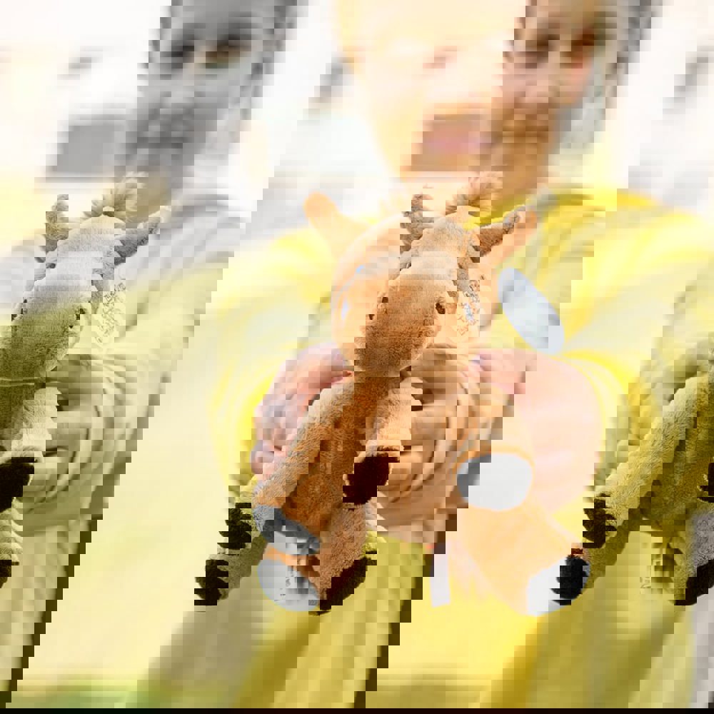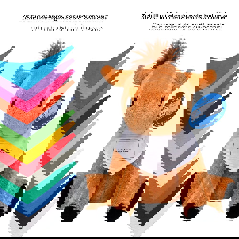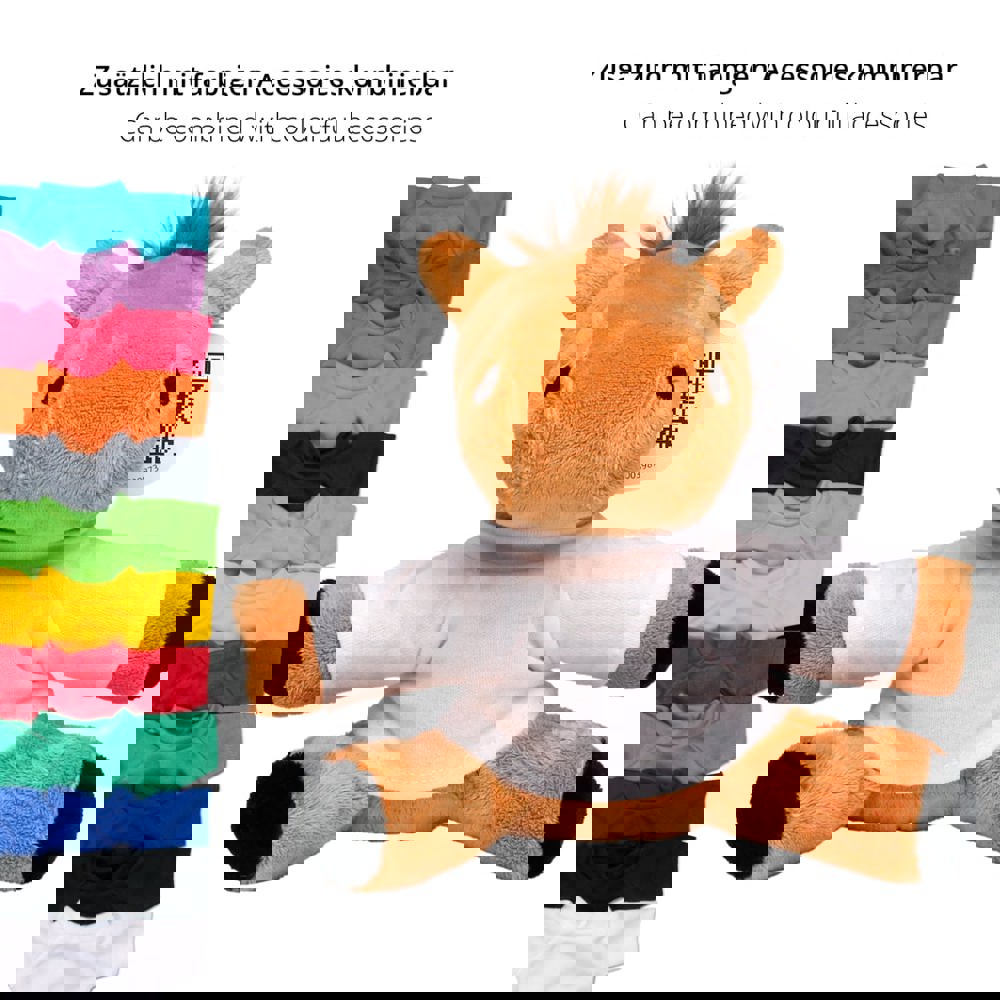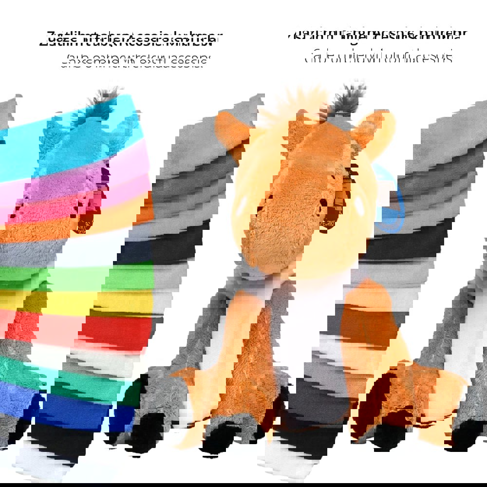 Unsere Zootier-Serie hat sich zu einem Bestseller innerhalb der MiniFeet® Familie entwickelt. Aus diesem Grund wurde die Zootier-Familie vom TÜV Rheinland auf Herz und Nieren geprüft. Nun dürfen wir voller Stolz mitteilen, dass die wilden Kuschelkumpel den Toy Proof Kriterienkatalog für Spielzeuge erfüllen. Die großen Kulleraugen und der schmuseweiche Plüsch laden zu gemütlichen Kuschelzeiten ein. Die Werbeanbringung erfolgt auf den passenden Accessoires wie Dreieckstuch oder Doming. Unser Pferd Claudia ist rotbraun, mit wuscheliger Mähne und schwarzen Hufen. Äußerst kuschelig ist sie immer auf der Suche nach wilden Abenteuern, ganz neugierig und erkundungsfreudig, macht sie aber auch immer gerne Pausen für Schmuseeinheiten.