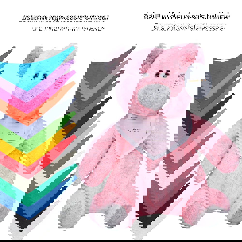 Unser schmuseweiches OEKO-TEX® Schwein Trine schafft mühelos sein Upgrade vom Nutztier zum nachhaltigen Kuschelhelden für Kinder und Erwachsene und bringt nachhaltige Werbung in Kinder- und Schlafzimmer. Für Logoanbringung oder Werbung existieren vielfältige Möglichkeiten, neben angenähten Domings oder einer Werbefahne auch bedruckbare Mode und Accessoires für Kuscheltiere wie T-Shirts, Dreieckstücher und Schals.