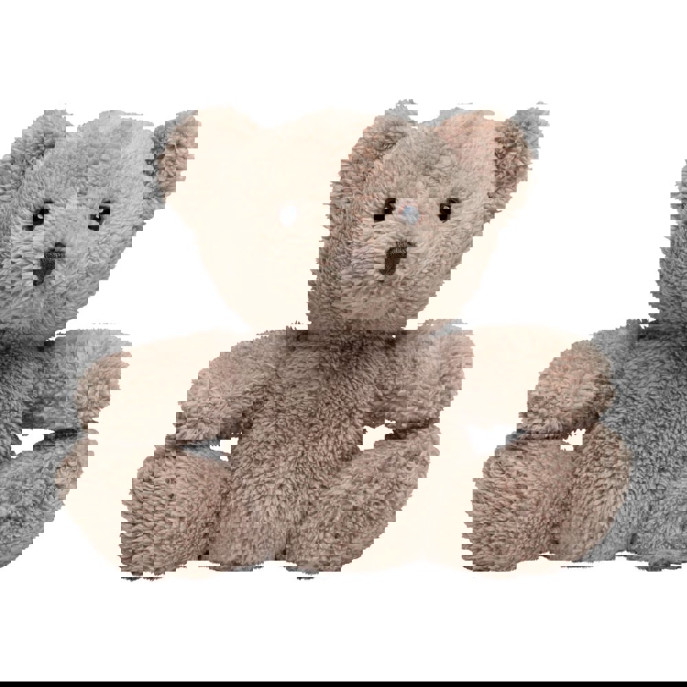 Der Bär ist ein kleiner Teddy, mit dem man auf Nummer sicher geht. Sie ist OEKO-TEX® Standard 100 zertifiziert und ist bis 60°C waschbar – sie ist also super zum Kuscheln geeignet und darf auch ruhig mal ein bisschen schmutzig werden. Zwei große, dunkle Kulleraugen und eine dunkle Schnauze legen in Kombination mit einem Körper aus einer Art Plüsch den Fokus aufs Wesentliche: Kuscheln, kuscheln, kuscheln!