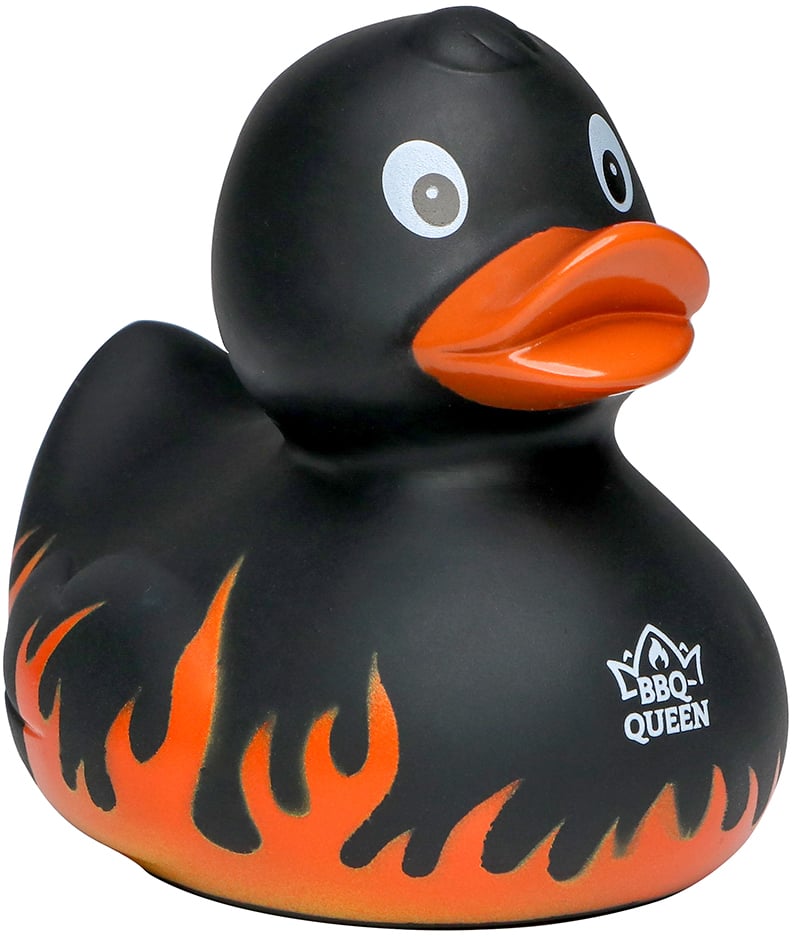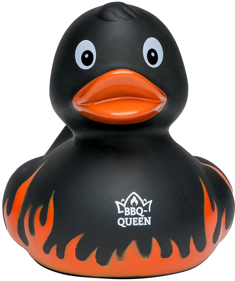 Quietsche-Ente Flammen mit Slogan BBQ-Queen, schwarz, one size