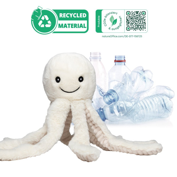 Studien haben gezeigt, dass Kuscheltiere in Form eines Oktopus ideal für den Start von Früh- und Neugeborenen sind, weil die Tentakel an die Nabelschnur erinnern. Liebevoll designt und entwickelt leisten die Recycel-Tieren außerdem einen wichtigen Beitrag zum Thema Nachhaltigkeit: Alle Recycle-Tiere bestehen aus genutzten und recycelten Plastikflaschen. Augen und Nase sind gestickt, es werden also keine zusätzlichen Plastikteile verwendet. Diese liebevoll gestalteten Schätze des Meeres aus zartem Plüsch eignen sich perfekt zum Schmusen, Kuscheln und Liebhaben. Versicherungen, Banken, Krankenhäuser, Kinderärzte und Kommunen können mit diesen Lieblingen im Willkommenspaket für den neuen Erdenbürger nicht nur ein Lächeln schenken, sondern auch Verbindungen fürs Leben schaffen. Eine Veredelung ist via Druck oder per eigenem Plott auf der angebrachten Werbefahne möglich und erinnert so stets an den Schenker.