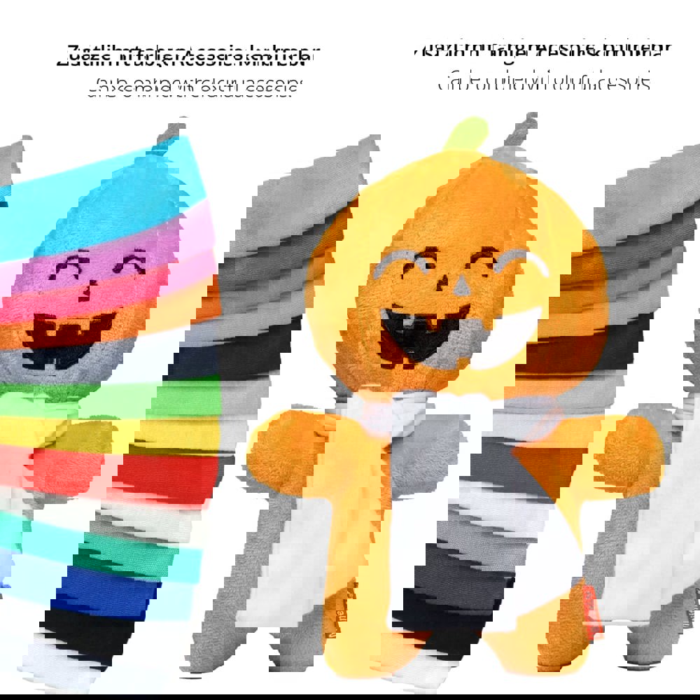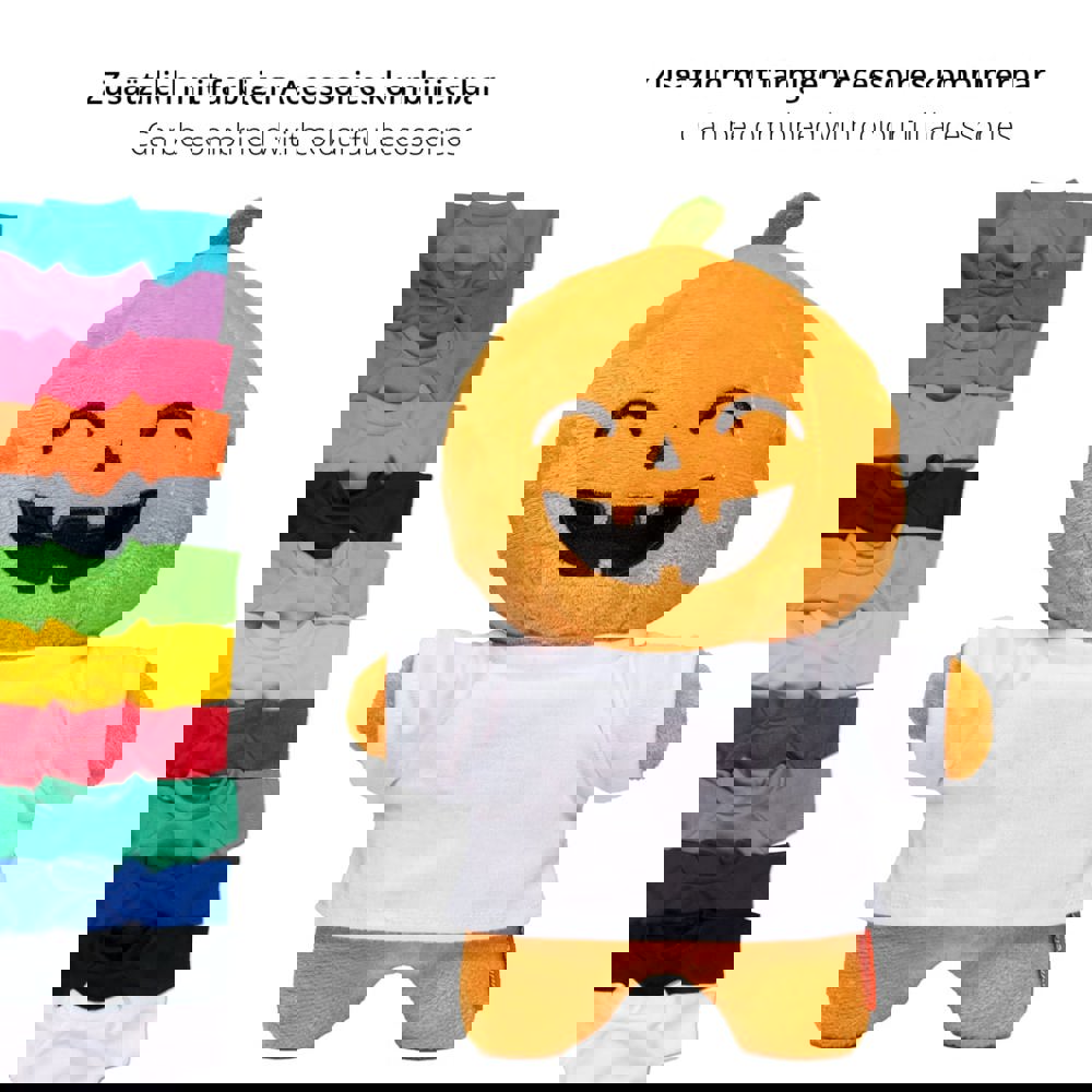 Dieser plüschige Kürbis ist die perfekte Ergänzung für jede Halloween-Sammlung. Ideal zum Schmusen oder als Geschenk für Halloween-Liebhaber. Für individuelle Gestaltung und Werbung bieten sich vielfältige Möglichkeiten: Ob durch Druck auf einer Werbefahne oder durch bedruckbare Mode und Accessoires wie Mini-T-Shirts und Schals.