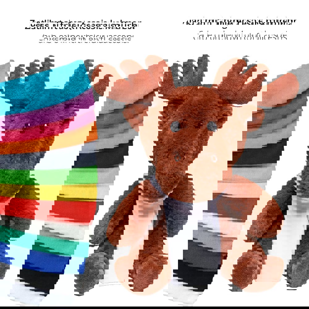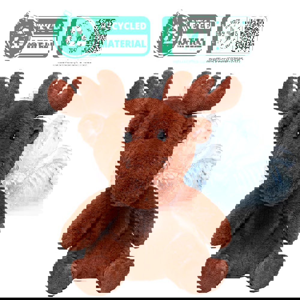 Zeit, sich mit unserem RecycelElch in ein nachhaltiges Kuschelabenteuer zu stürzen! Genießen Sie die Weichheit, Freundlichkeit und das liebevolle Design, während Sie gleichzeitig einen Beitrag zur Umwelt leisten. Unser RecycelElch besteht aus recycelten Plastikflaschen und setzt damit ein starkes Zeichen für Nachhaltigkeit. Die gestickten Augen und die Nase tragen dazu bei, dass keine zusätzlichen Plastikteile verwendet werden.