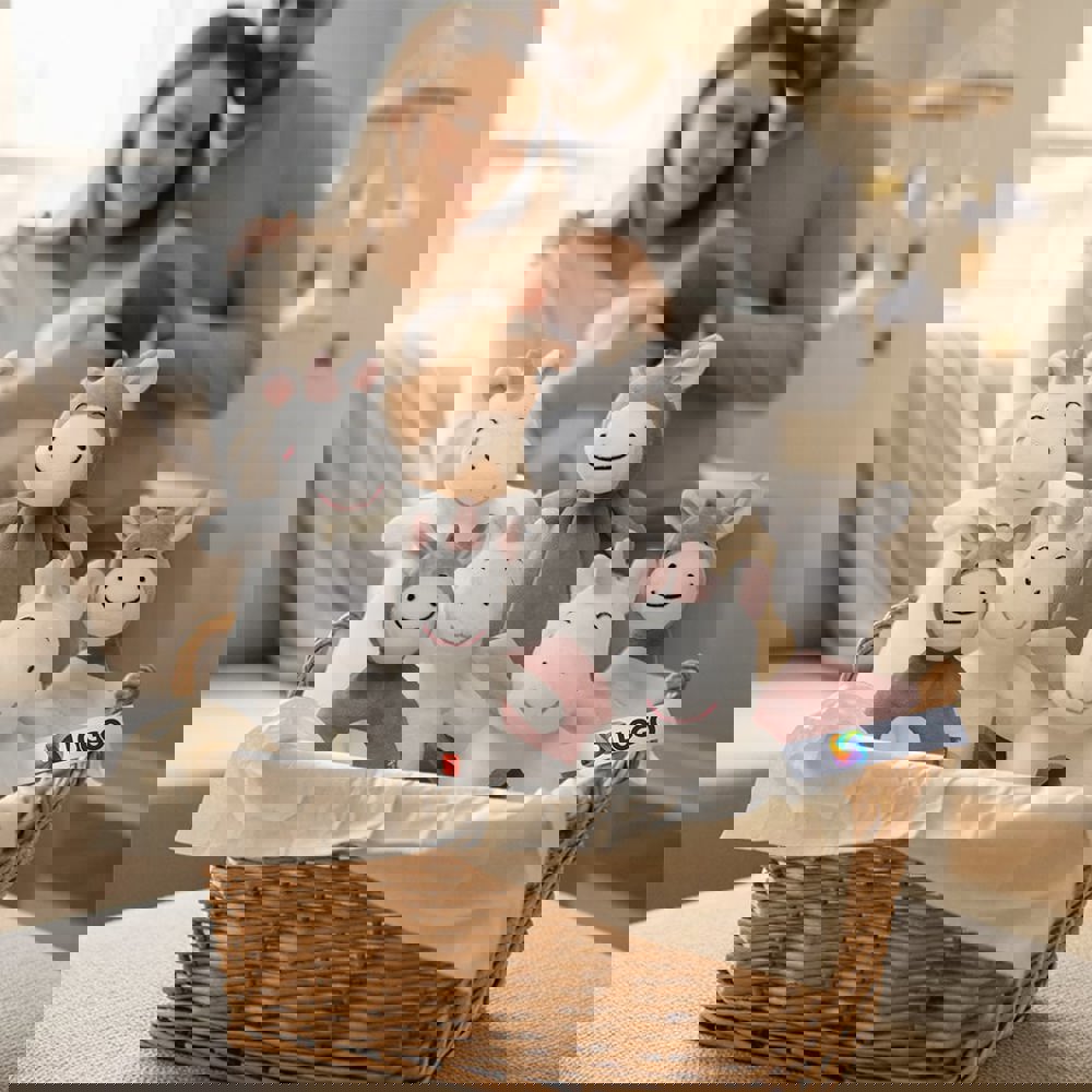 Der klassische Esel-Greifling überzeugt durch seine greiffreundliche Form, flauschige Materialien und kindgerechte Farben. Er weckt Neugier und begleitet die Kleinsten sicher beim Erkunden ihrer Welt. Mit Werbefahne versehen, lässt sich Ihre Werbebotschaft ansprechend und emotional transportieren. Selbstverständlich ist der Greifling zertifiziert gemäß OEKO-TEX® STANDARD 100 (A08-0261 Hohenstein HTTI, oeko-tex.com/standard100). Alle Bestandteile wurden auf Schadstoffe geprüft und sind besonders geeignet für die empfindliche Babyhaut.