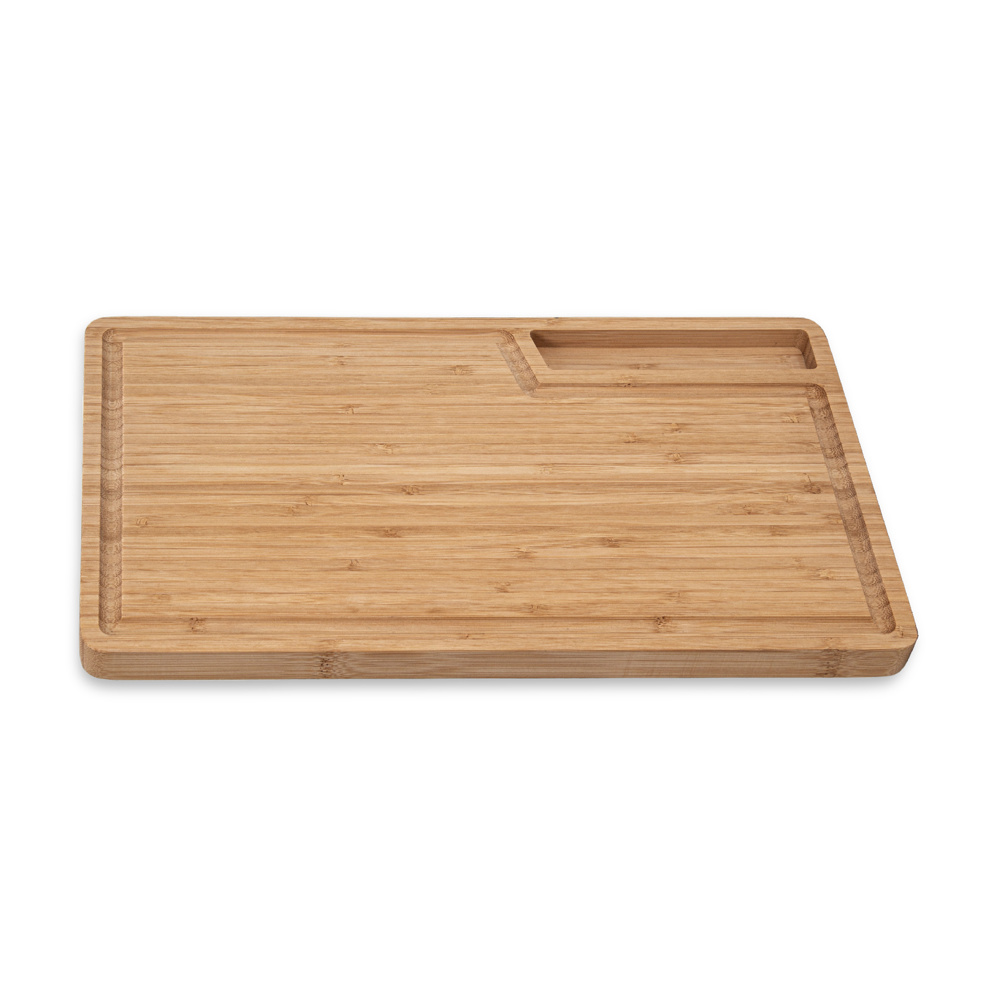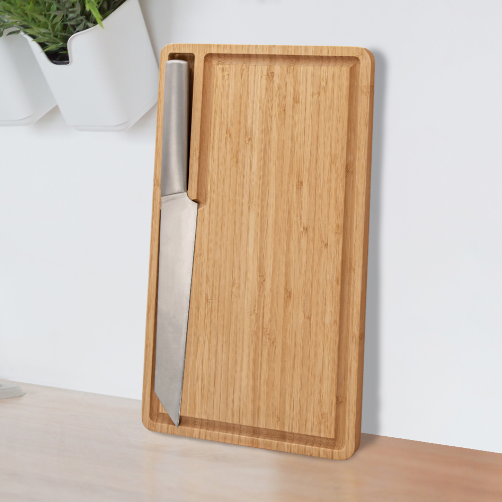 Das Messer wird magnetisch in der Griffmulde des Bambusbretts gehalten – ein echter Hingucker der durch die lange und häufige Nutzung dauerhaften Werbeerfolg garantiert.