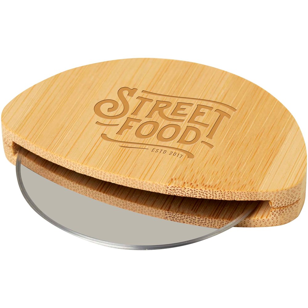 Pizzaschneider mit Bambusgriff und Edelstahlklinge.