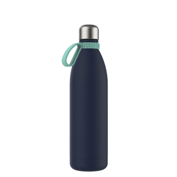 Die doppelwandige Thermo Trinkflasche fasst 750 ml und ist somit die größere Alternative zu unserem ursprünglichen Modell. Sie hält Ihre Getränke zuverlässig heiß oder kalt und besticht durch ihre besonders große, prominente Logofläche. Sie ist entweder mit navy-blauer, schwarzer oder weißer Pulverbeschichtung oder in Edelstahl matt silber mit Antifingerprint-Beschichtung erhältlich. Der Drehverschluss schützt vor dem Auslaufen.