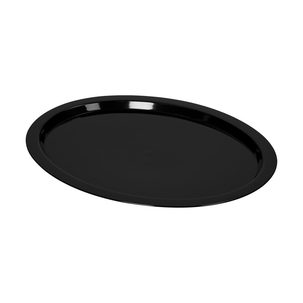 Ovales Tablett aus stabilem Kunststoff mit großer Werbefläche und niedrigem Rand zur besseren... mehr