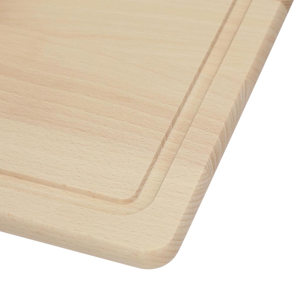 Da passt ganz schön was drauf. Riesiges Schneid- oder Brotzeitbrett aus 15 mm starkem Buchenholz (unbehandelt). Mit gefräster Rille am Rand gegen Herunterfließen von Flüssigkeiten. Ausschließlich von Hand spülen.