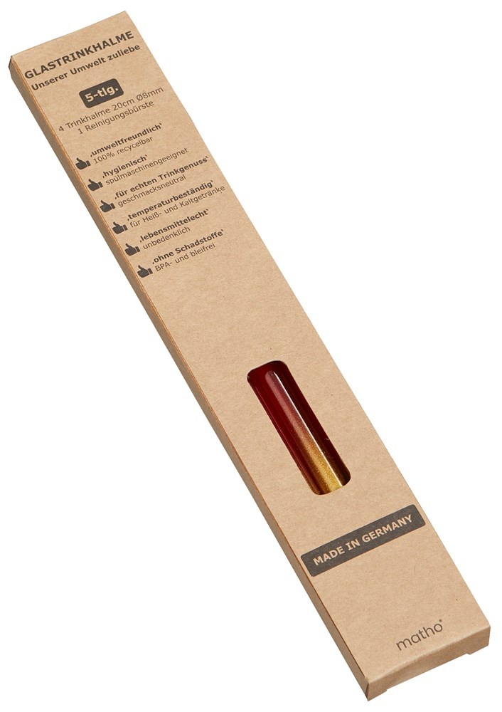 Die Halme sind 100 % recycelbar, patentiert lebensmittelecht beschichtet,
