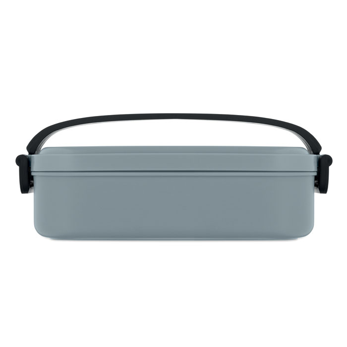 Lunchbox aus PP mit luftdichtem Deckel. 2 seitliche Halteklammern und Griff. Füllmenge: 800 ml.