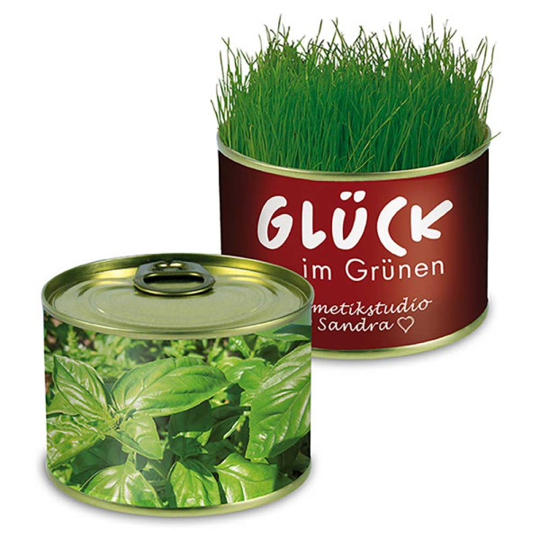 Geliefert wird die Weißblech-Dose mit einer Auswahl an Samen und einer Substrattablette als Erde. Einfach Deckelöffnen, gießen und die Natur live erleben. Die Werbebanderole bietet viel Platz für Ihre individuelle Werbebotschaft und verleiht der Dose einen einmaligen Charakter.