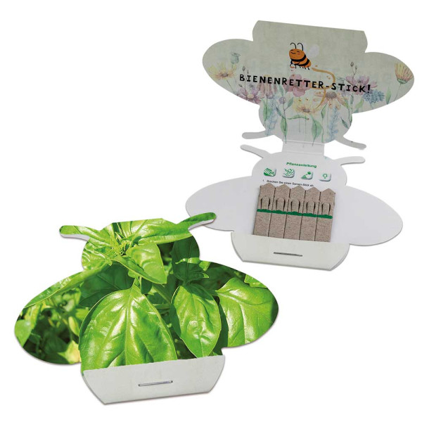 Frühlings- und Sommergrüße oder einfach von Herzen Danke sagen! Anlässe für einen Werbegruß gibt es viele. Mit den Samen-Sticks gelingt einemdabei noch ein Überraschungseffekt: Denn im flachen Briefchen aus Papier erwarten einen keine Streichhölzer, sondern Werbegrüße mit Samen, die sich durch die flache Form und das geringe Gewicht perfekt als Selfmailer eignen. Auf fünf kleine Sticks aus Papier werden wahlweise Basilikum, Fichtensamen, Wildblumen- oder Kräutermischung aufgebracht. Wird ein Stick in die Erde gesteckt und gegossen, sprießt schnell ein kleines Pflänzchen. In Herzform, Standard-Briefchen oder als lustige Biene können sie je nach Werbethema die Botschaft durch die Form unterstützen und individuell angepasst werden. Das Briefchen selbst ist auf vier Seiten individuell gestaltbar. Eine Pflanzanleitung komplettiert das Werbemittel.