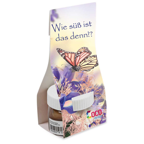 Ob zum Naschen zwischendurch oder eine Dosis für das Frühstücksbrot – das Mini-Gläschen mit Nutella ist „was für’s Auge“ und ein Genuss. In der praktischen und werblich großen Überreichverpackung eignet sich das Gläschen als genussvolles Werbegeschenk – schließlich geht nicht nur Liebe durch den Magen. Füllgewicht: 25g